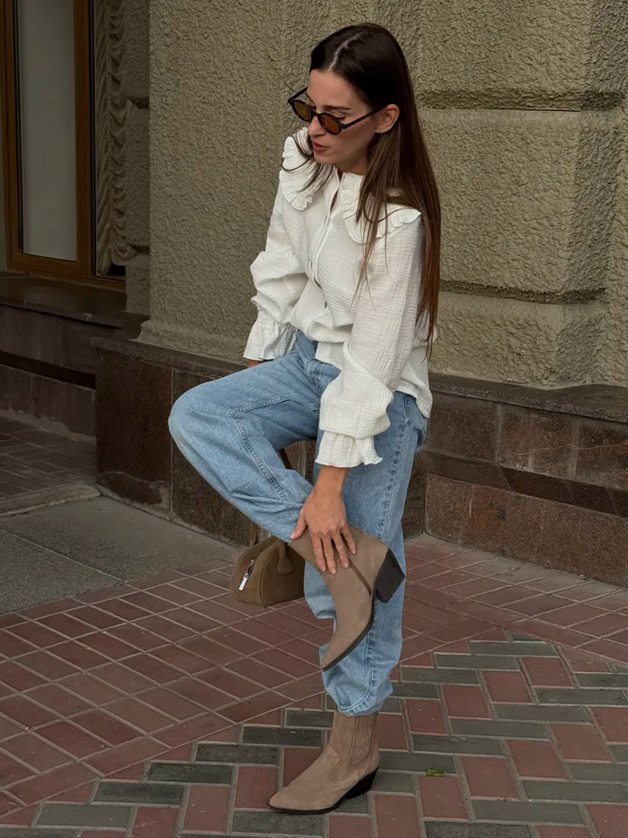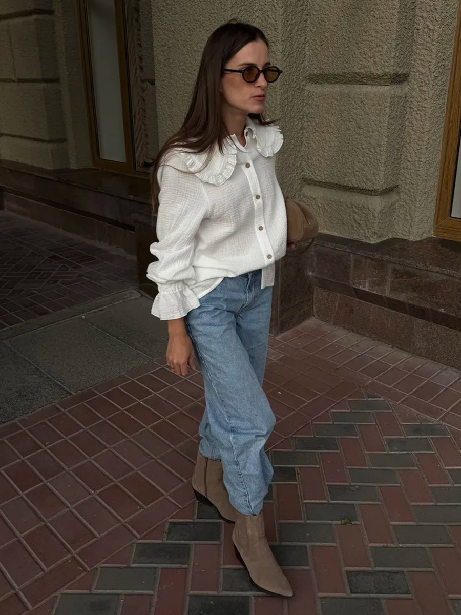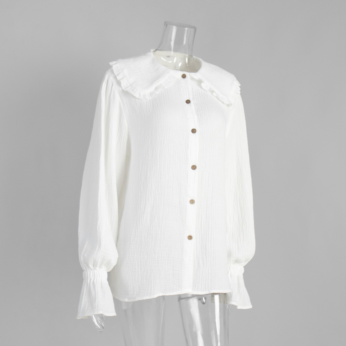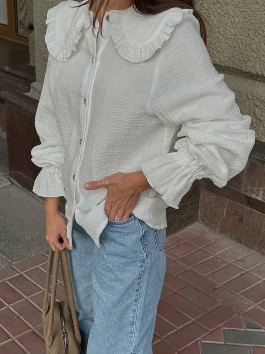 0 Review for Peter Pan Collar Ruffled Lantern-sleeve Shirt