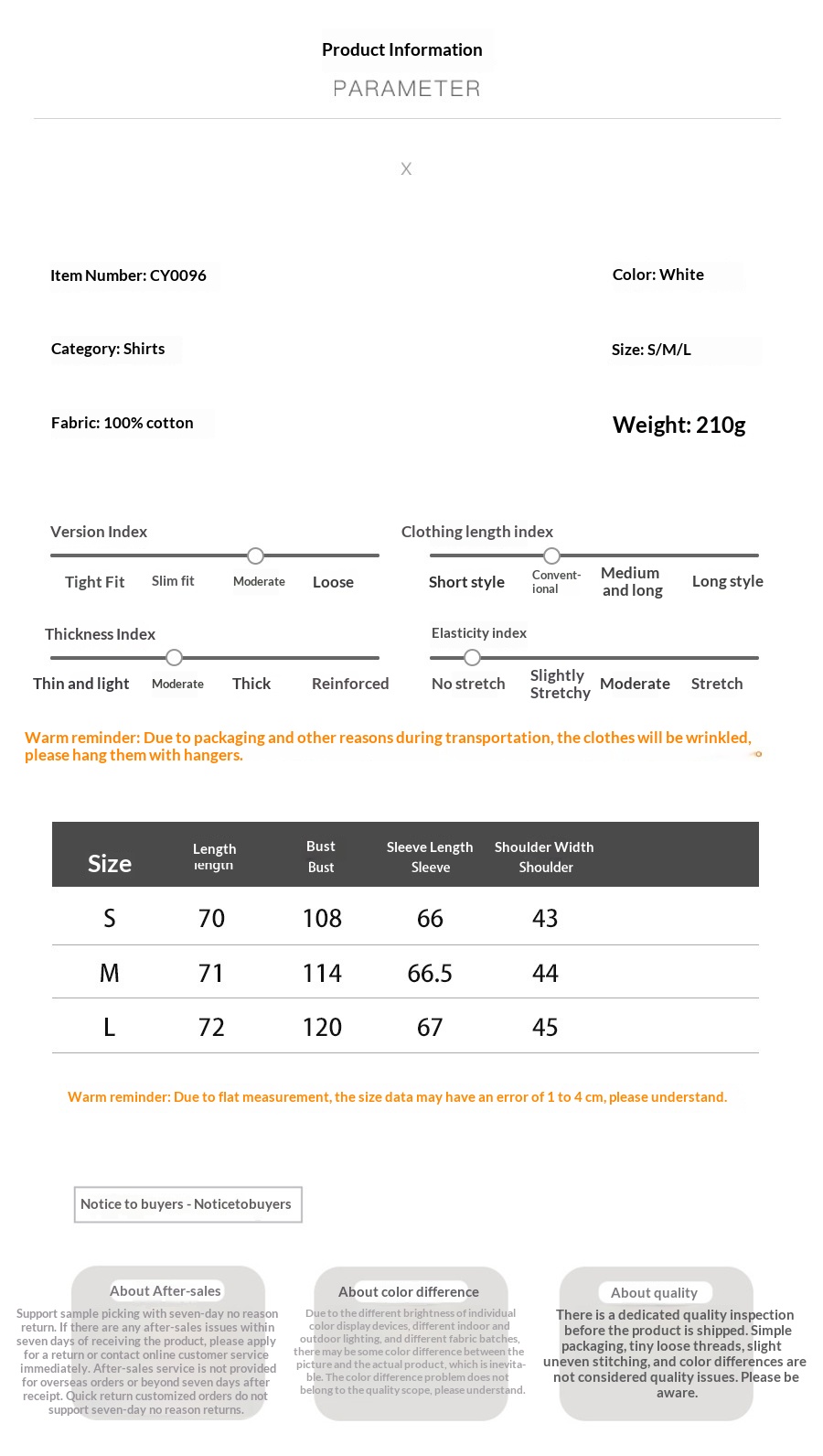 Product information: