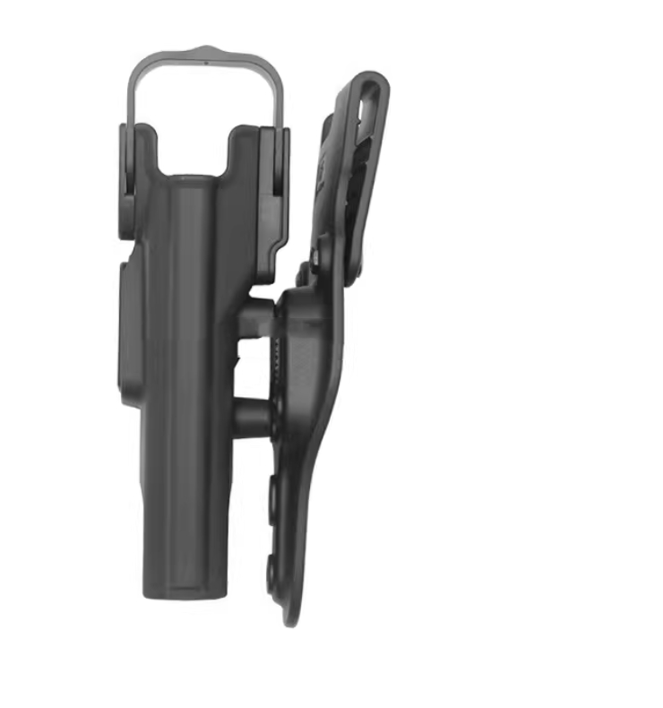 Double-lock quick-release gun holster can be manually adjusted for height up and down