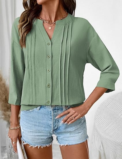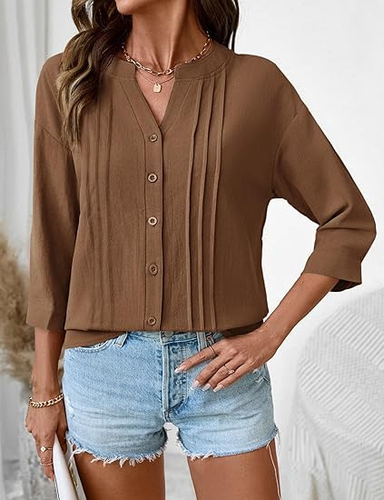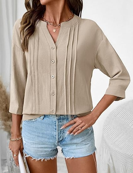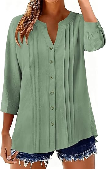 0 Review for Pleated Casual Solid-Color Loose Cotton-Linen Shirt