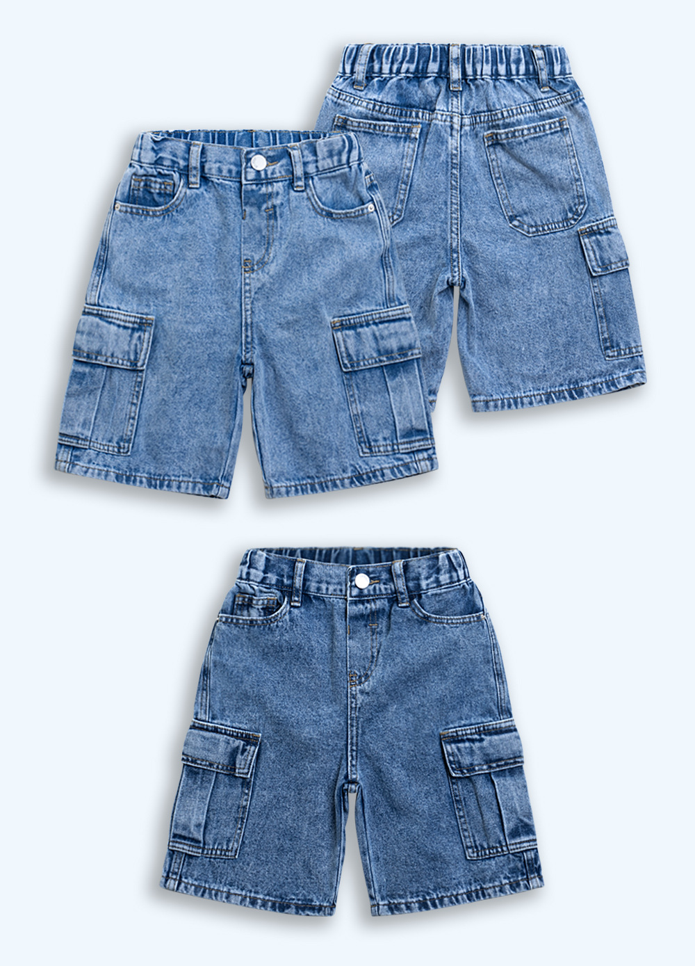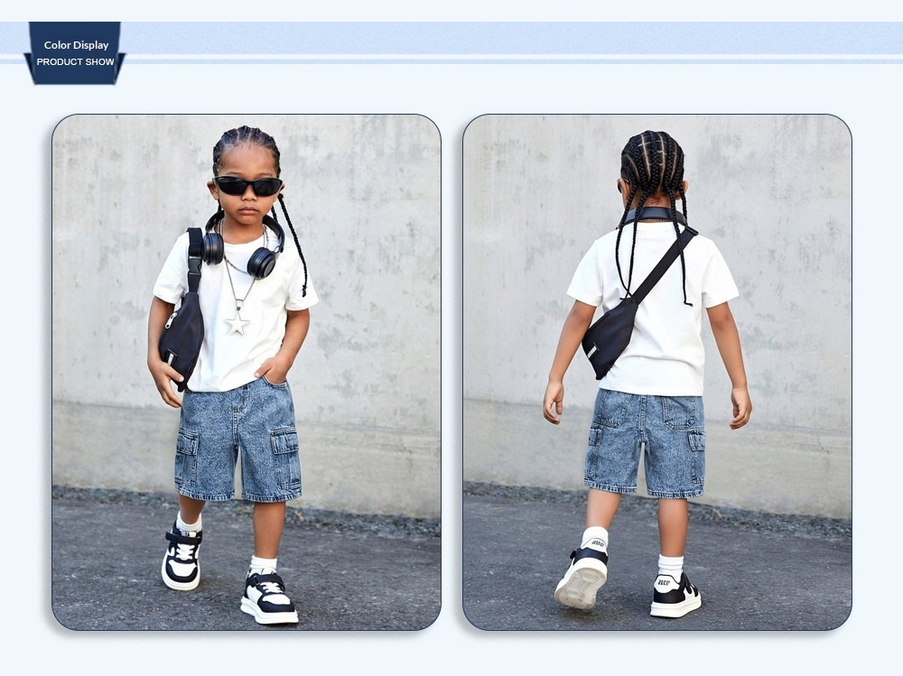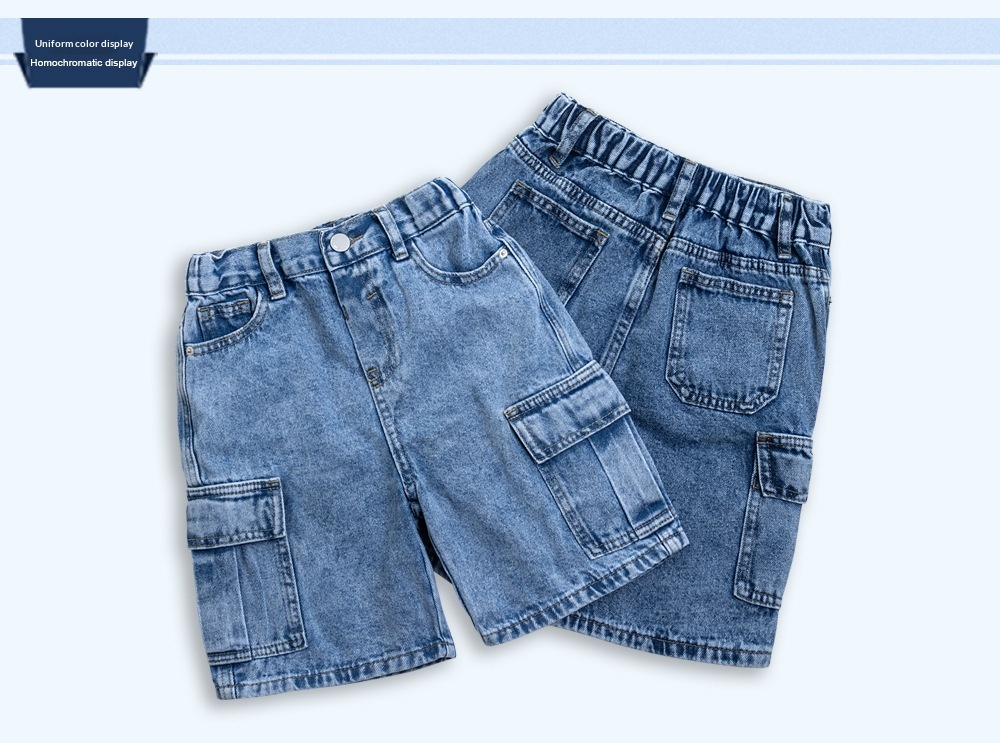 0 Review for Practical Multi-Pocket Washed Denim Shorts For Boys