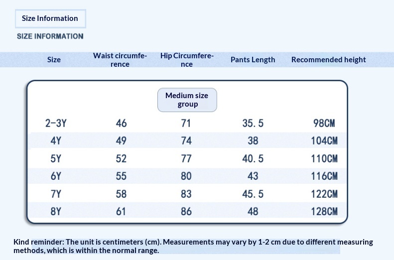 Suitable Height: M Size 2T–8T, 6 pieces per pack