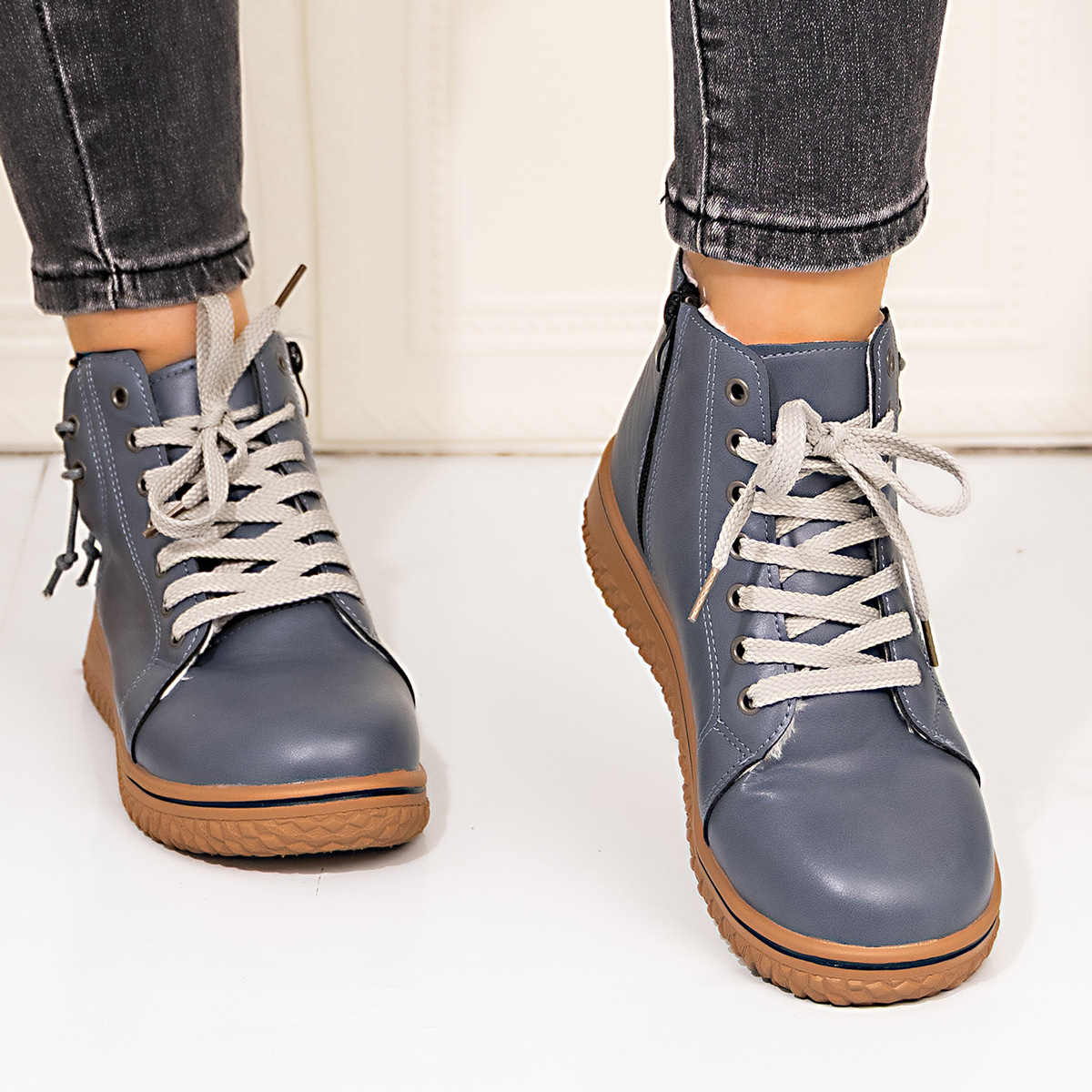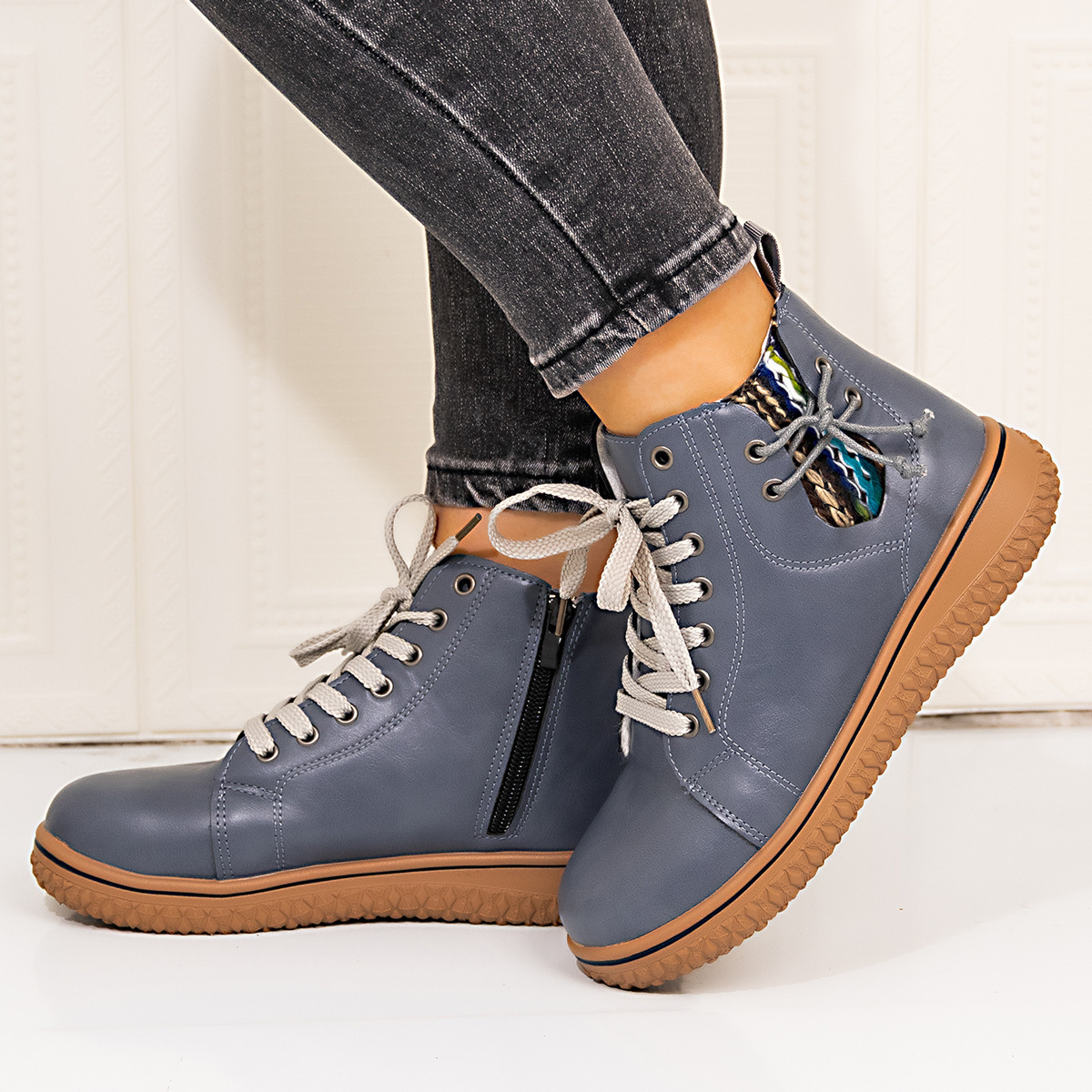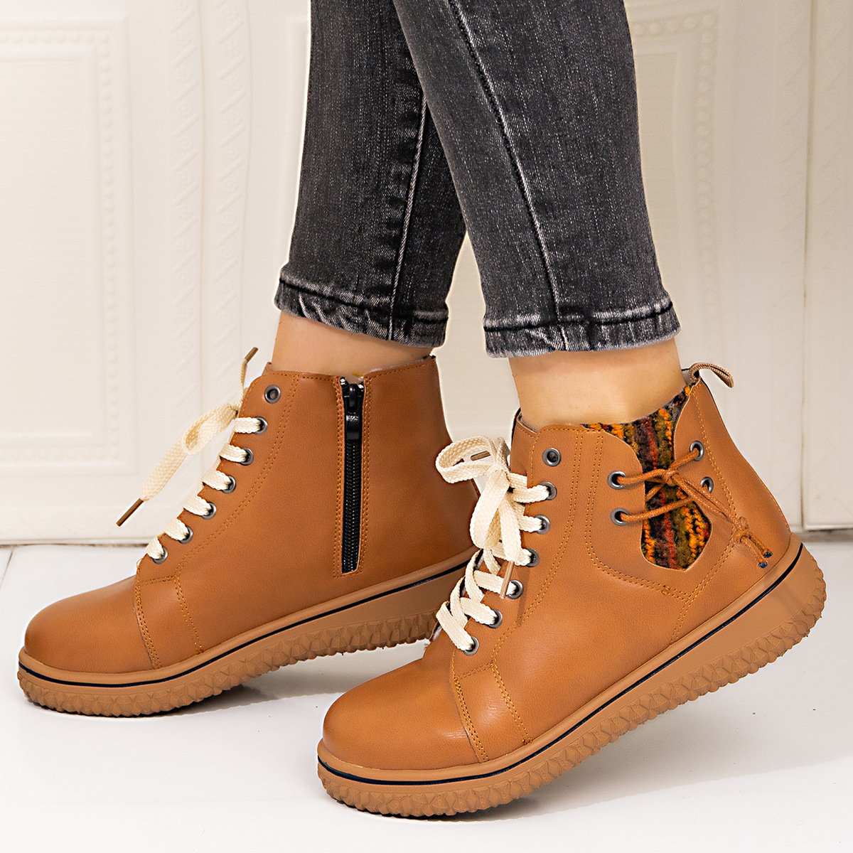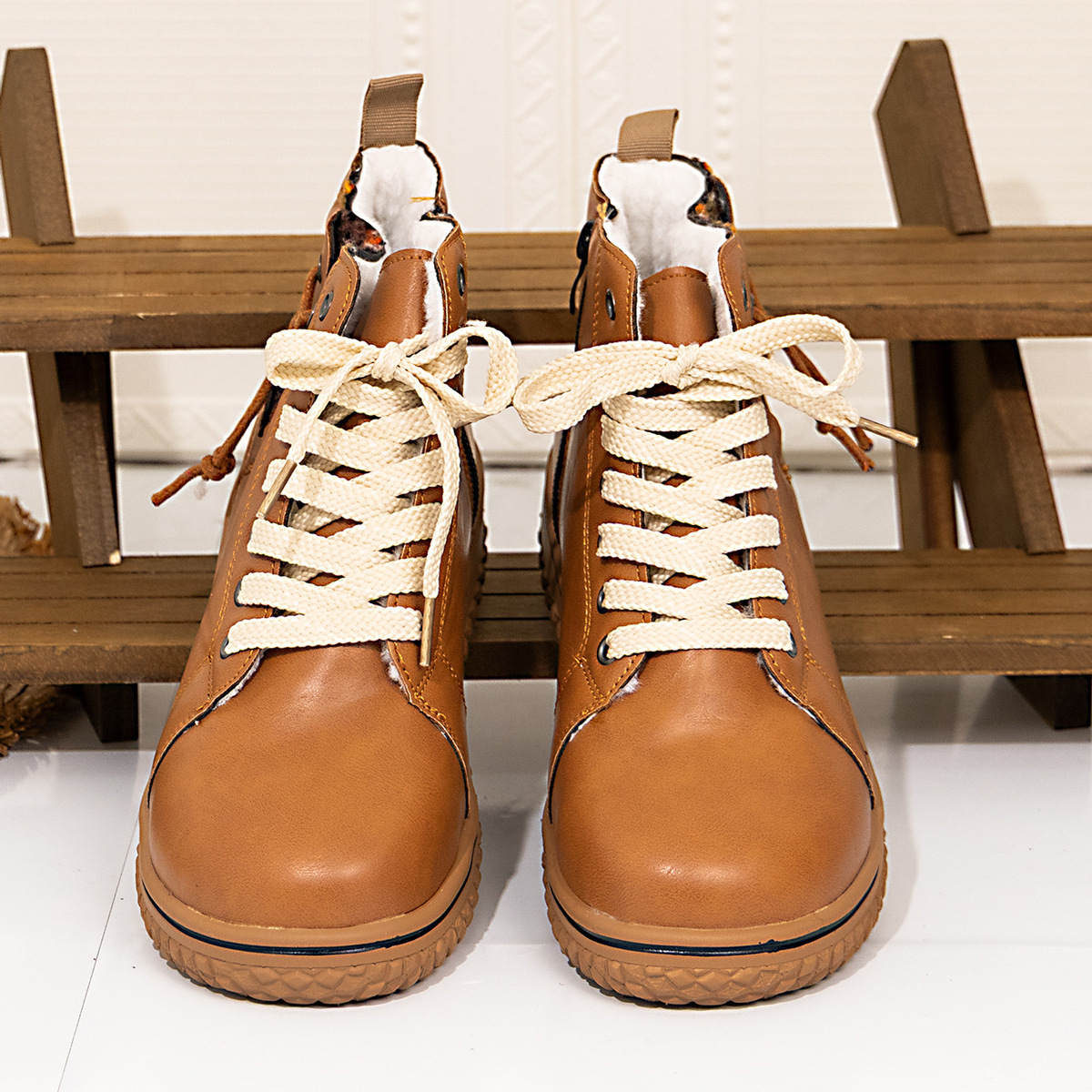 0 Review for PU Casual Shoes With Front Laces, Winter Cotton Boots