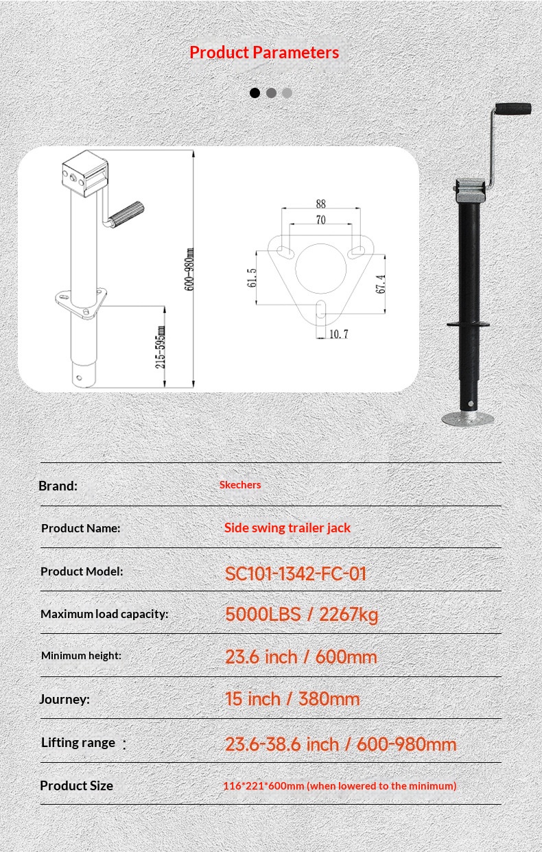 Specifications: Side-Crank Jack (Short Base), Long Base