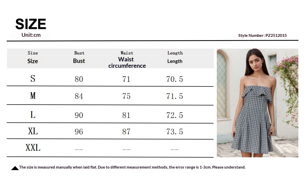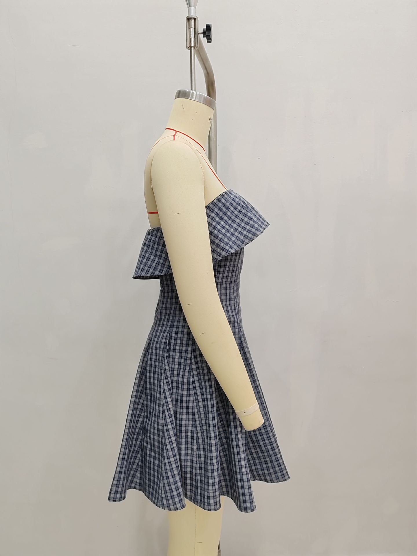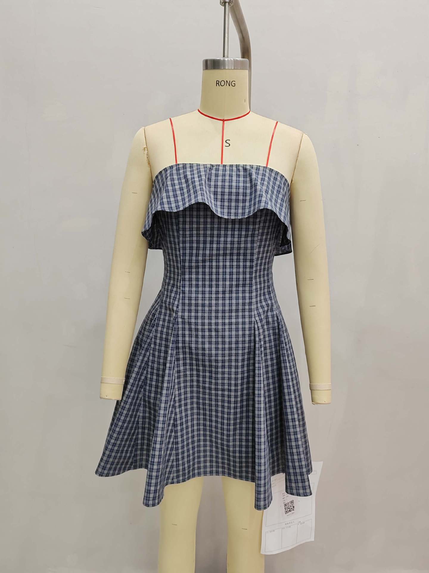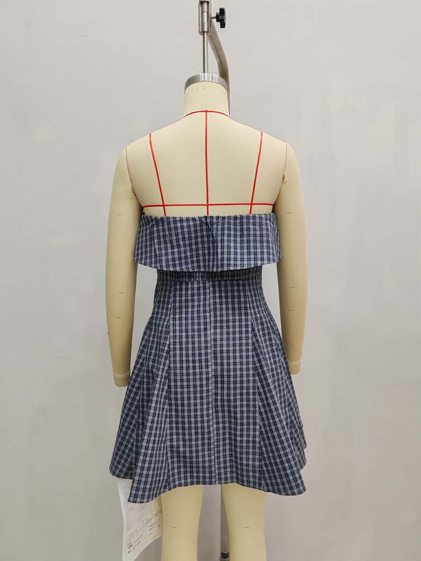 0 Review for Retro, High-end Blue Plaid Tube Dress
