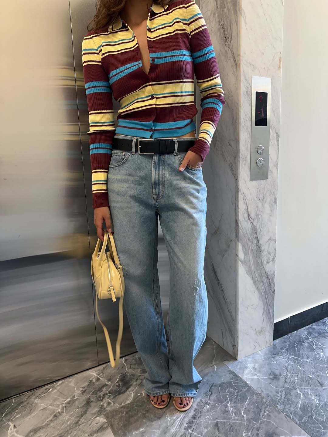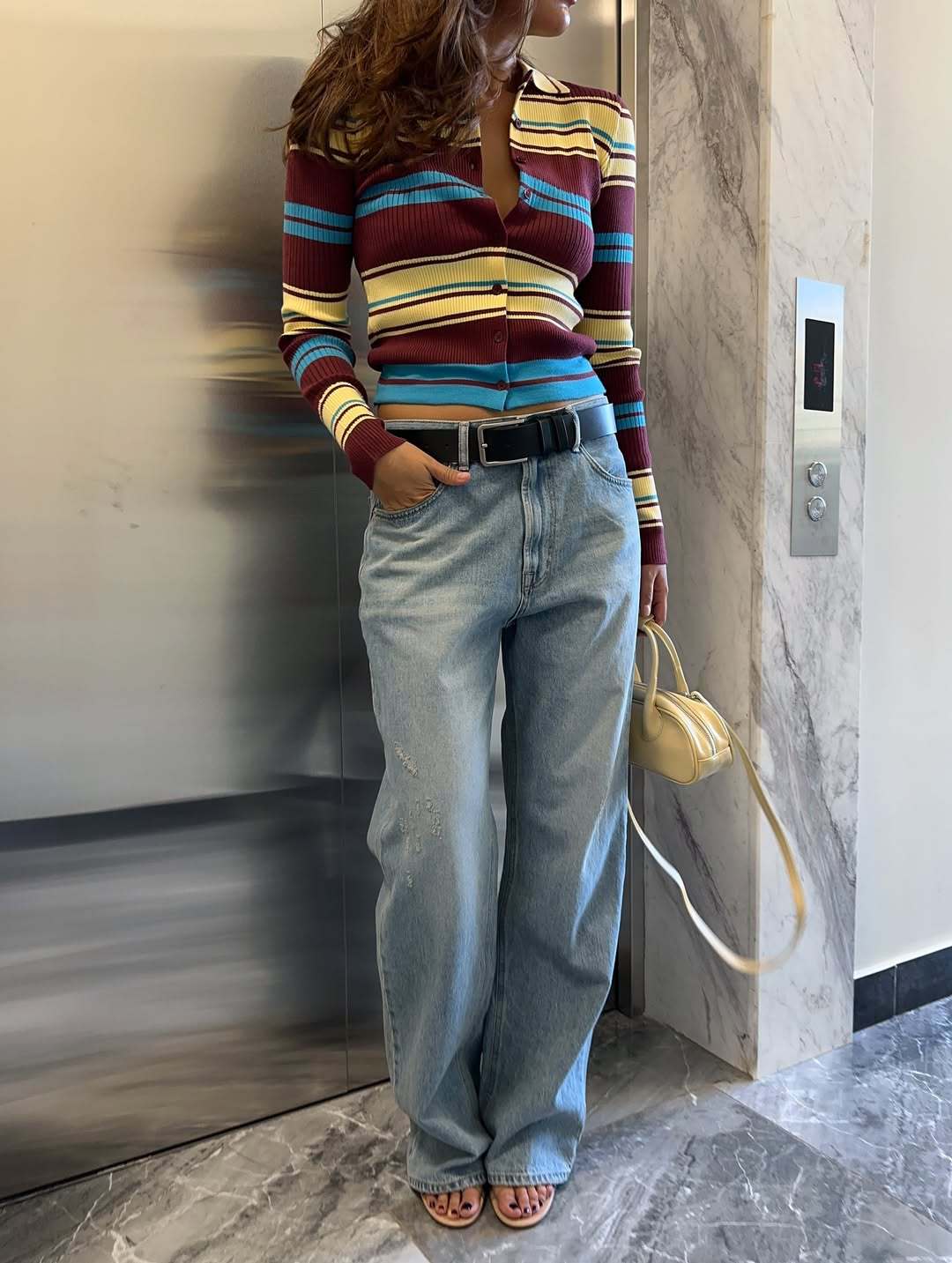 0 Review for Retro-collar Slimming Versatile Striped Sweater
