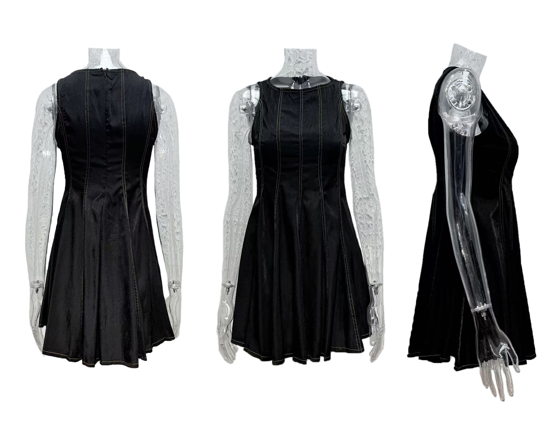 0 Review for Retro Crew-neck Sleeveless Denim Dress