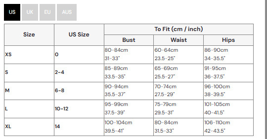 Sizes: XS, S, M, L, XL, XXL