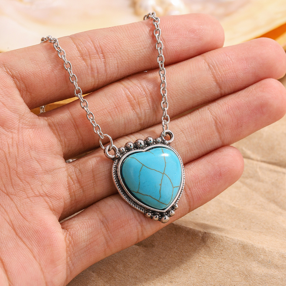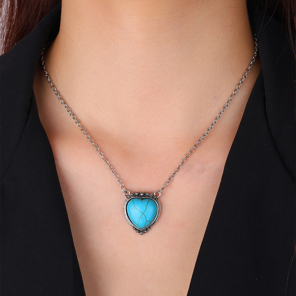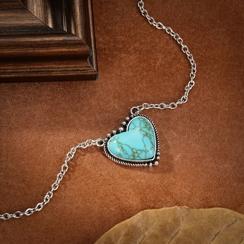 0 Review for Retro Heart-Shaped Turquoise Pendant Necklace