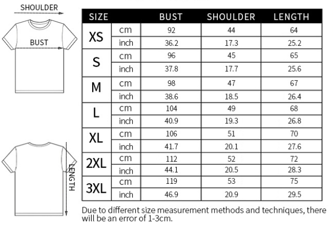 Sizes: S, M, L, XL, XXL, XXXL