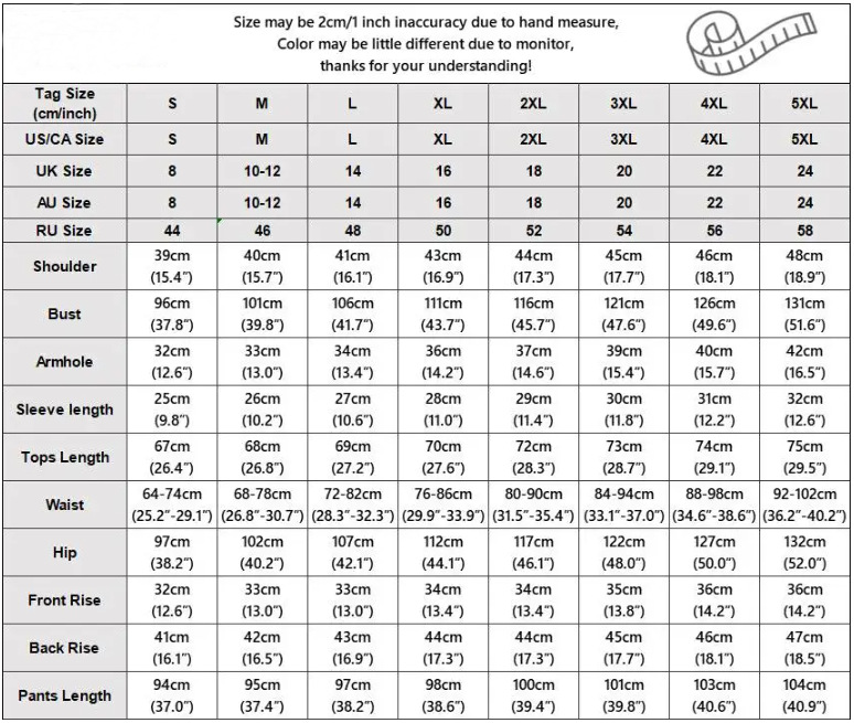 Sizes: S, M, L, XL, 2XL, 3XL, 4XL, 5XL