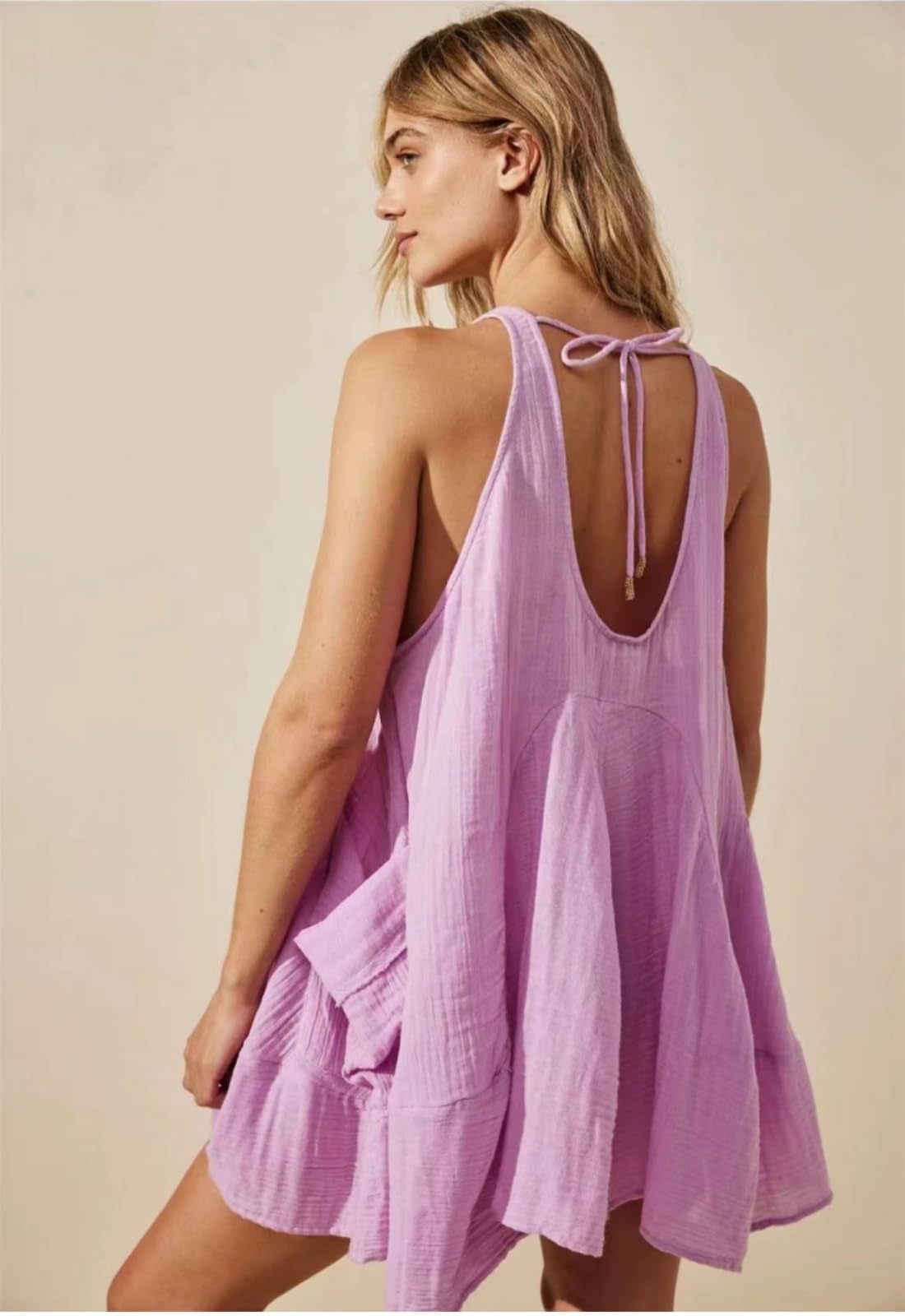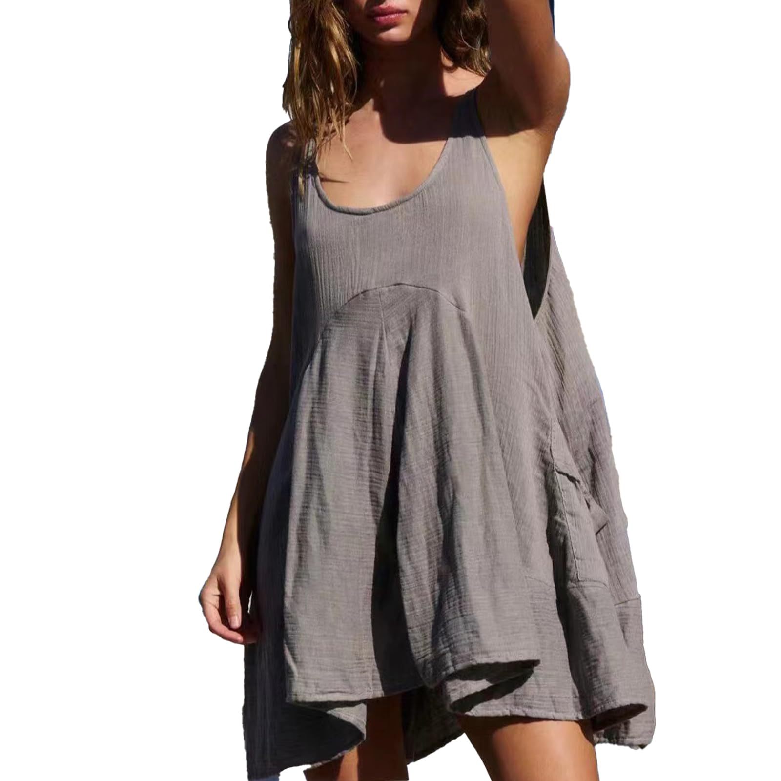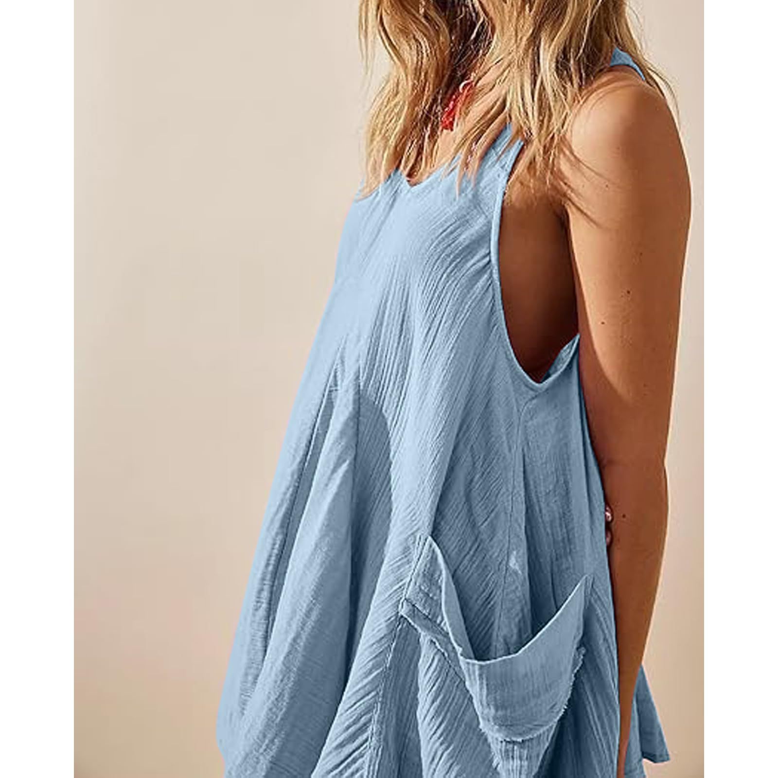 Sleeveless Crewneck Backless Mini Dress Loose-fit Tank Dress With Pockets