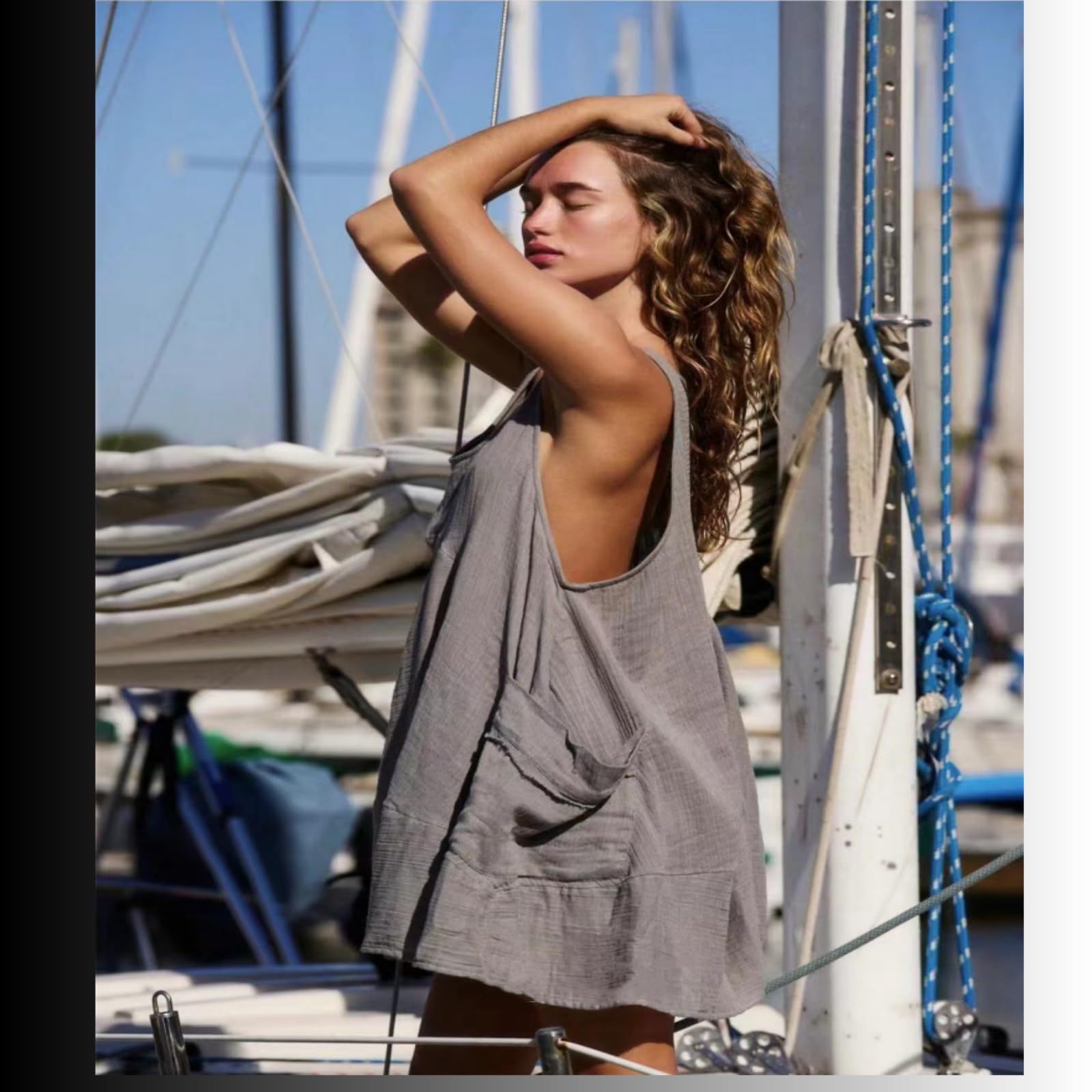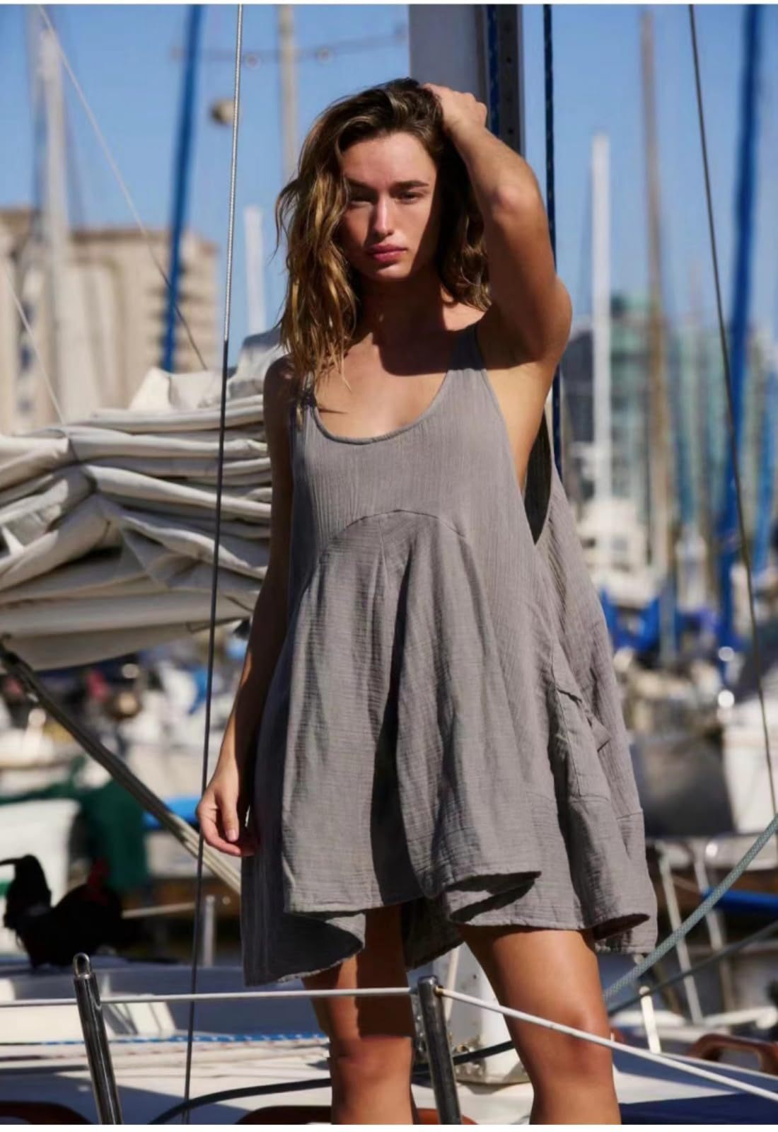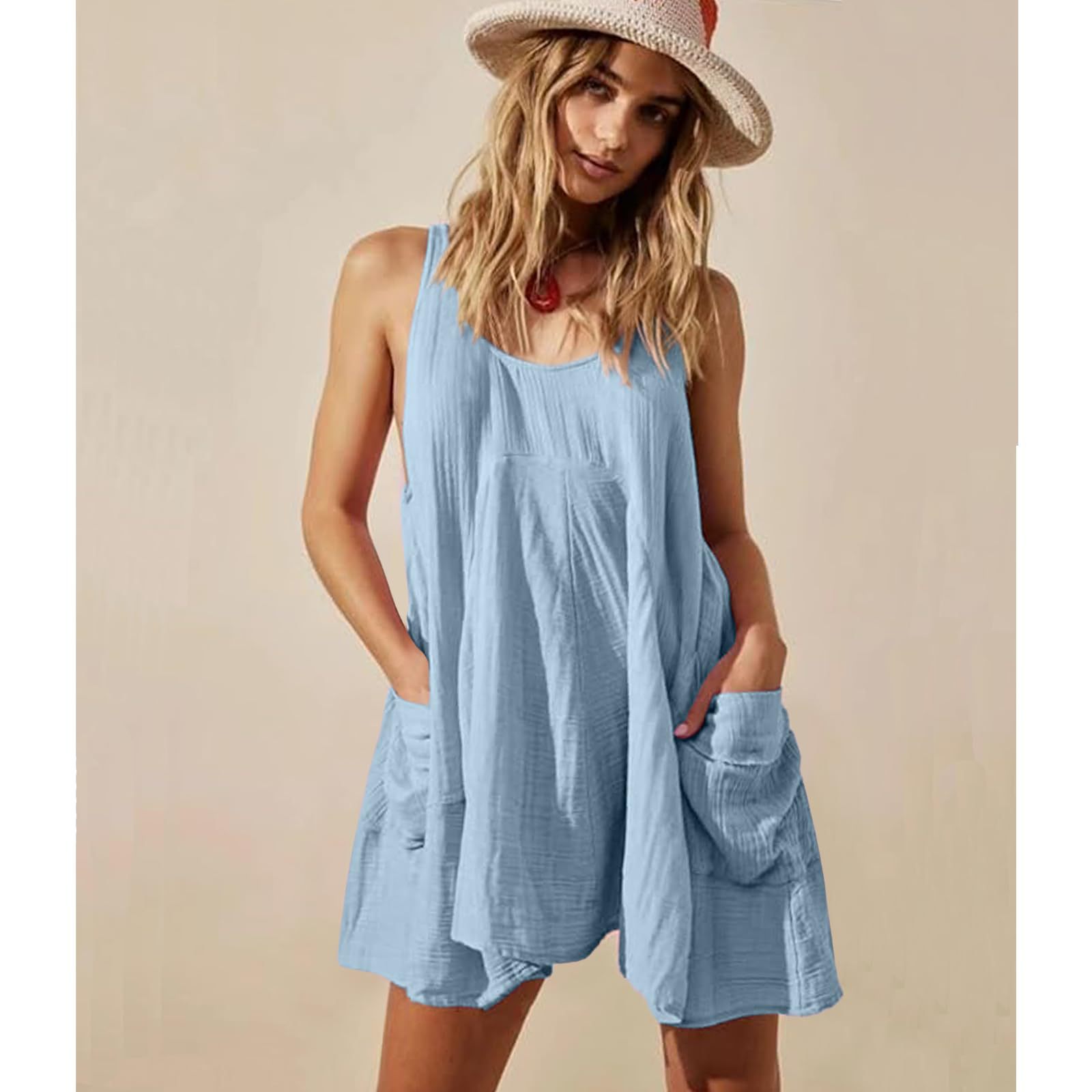 Sleeveless Crewneck Backless Mini Dress Loose-fit Tank Dress With Pockets