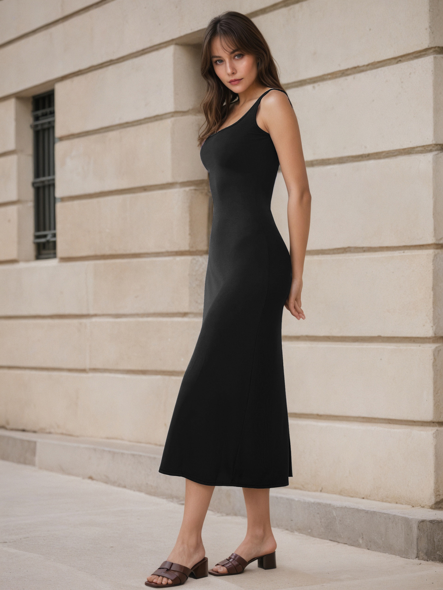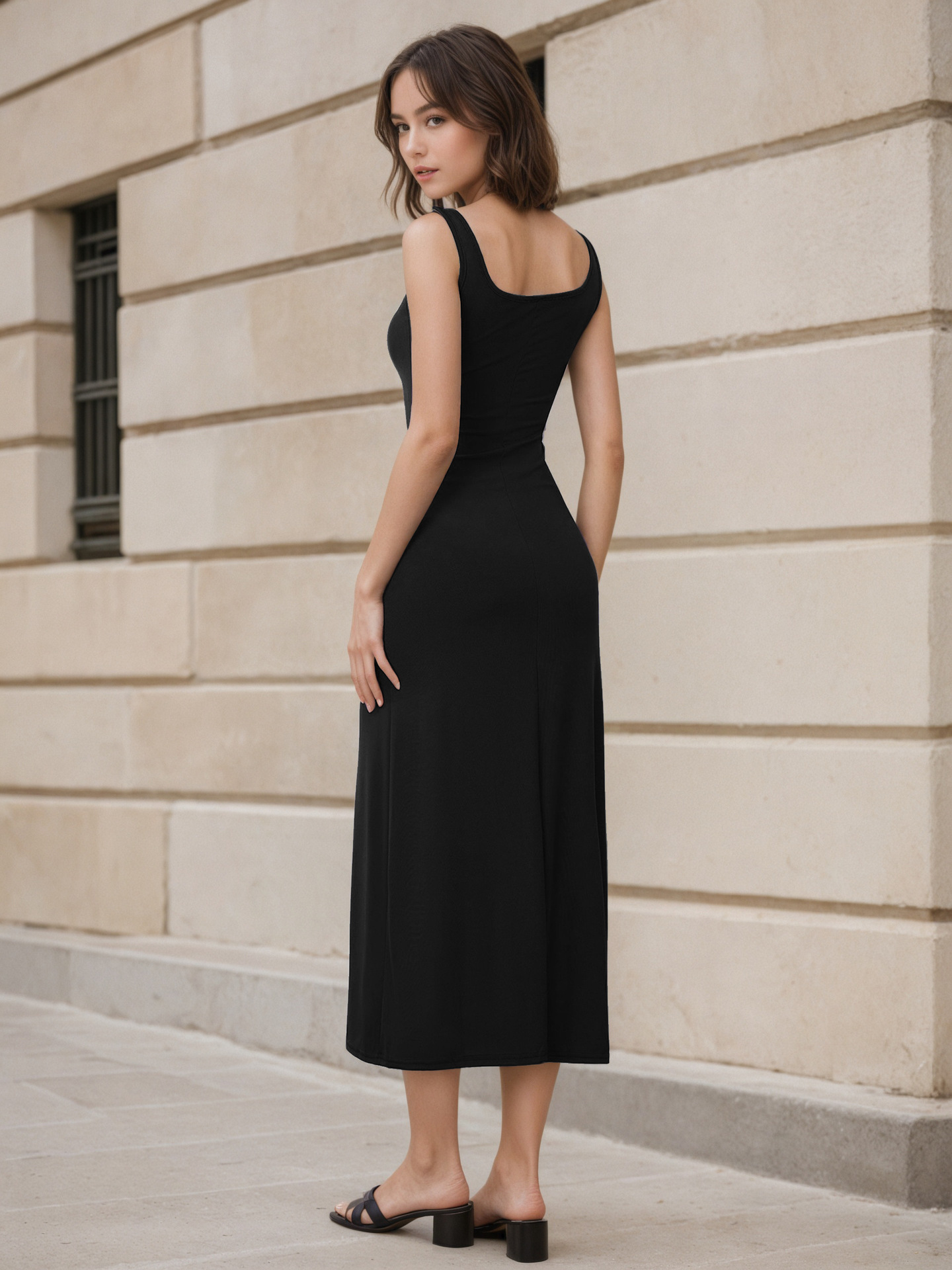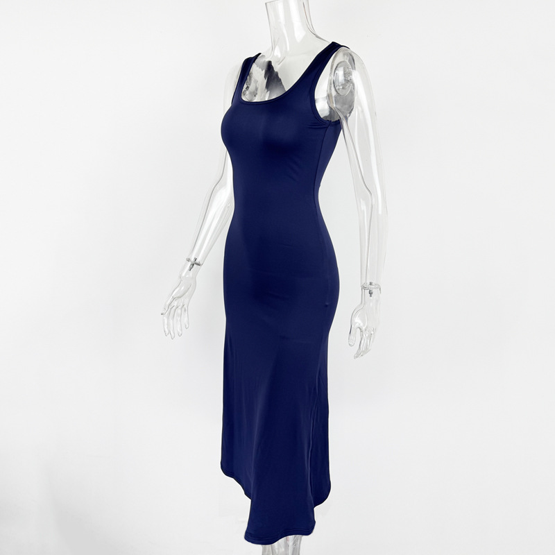 0 Review for Slimming Square-Neck Elegant Sleeveless Tank Dress For Women