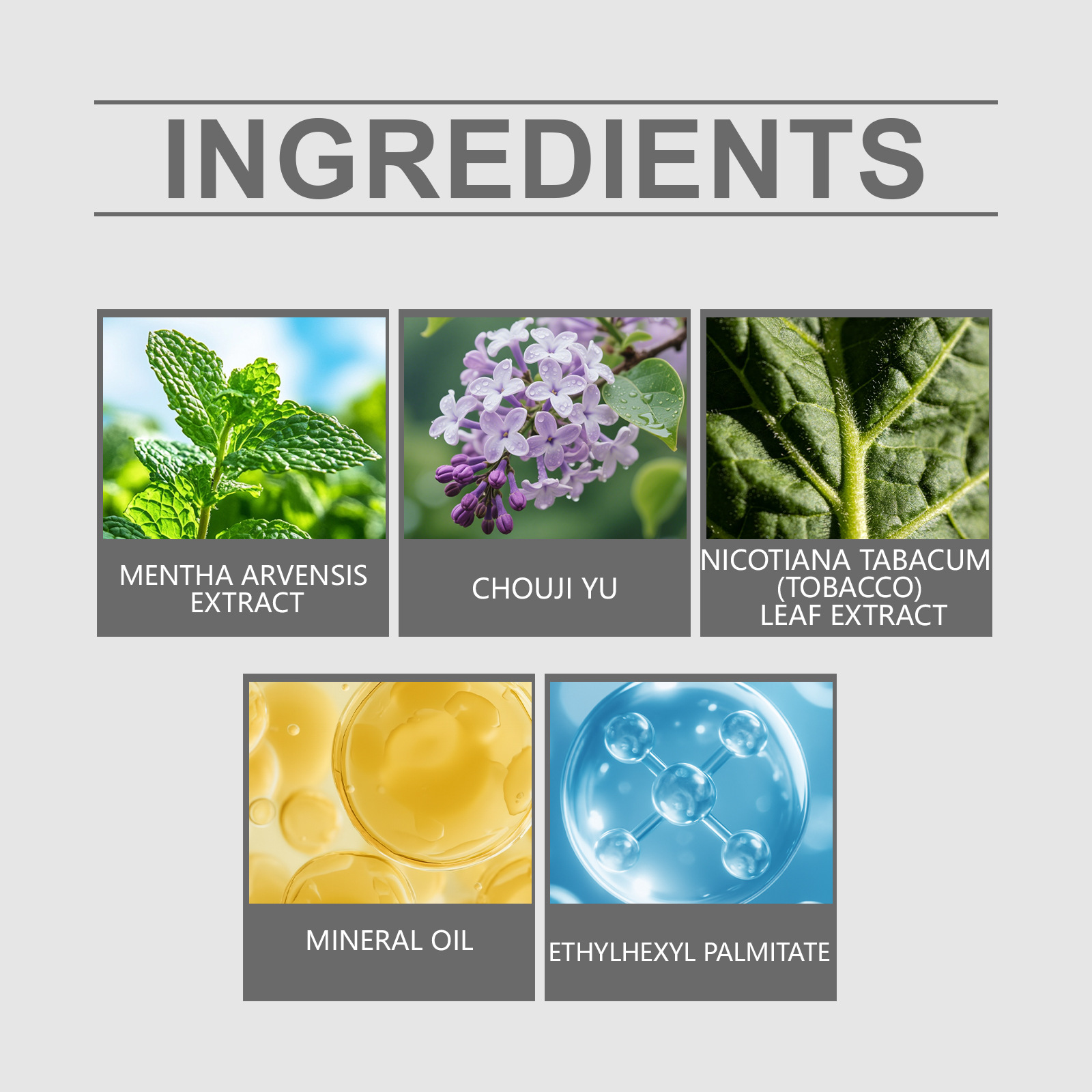 Active ingredients: Field mint extract, clove oil, tobacco leaf extract