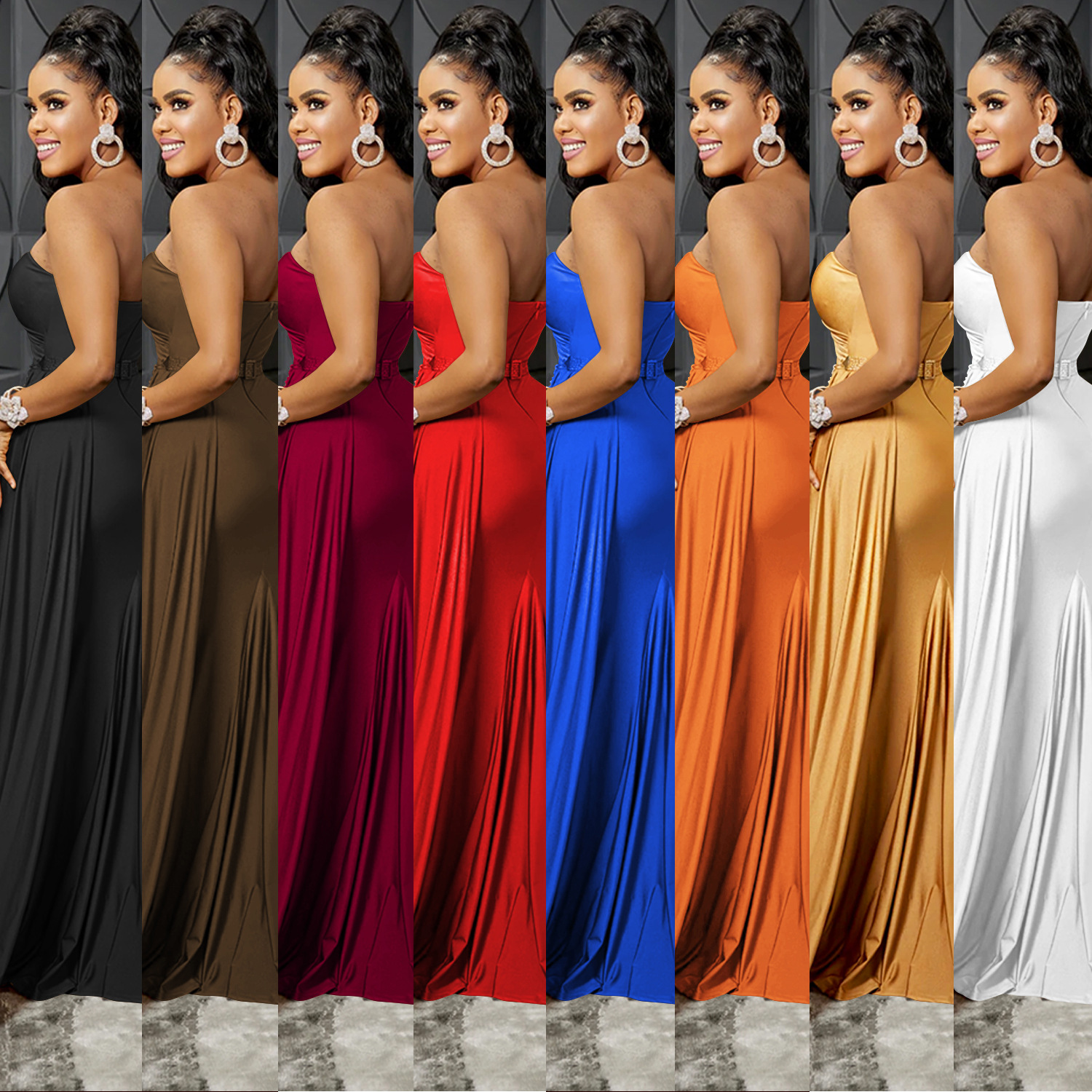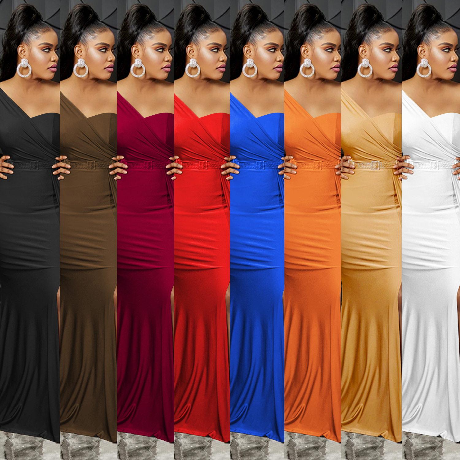 0 Review for Solid-color Party Bodycon One-shoulder Sleeve Dress