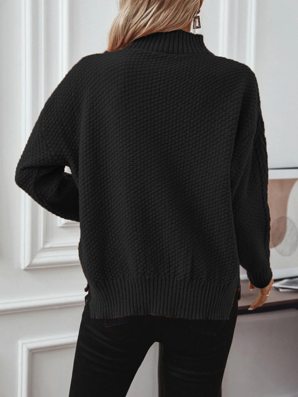 0 Review for Solid-color Womens Sweater With A Front Slit And A Longer Back Hem