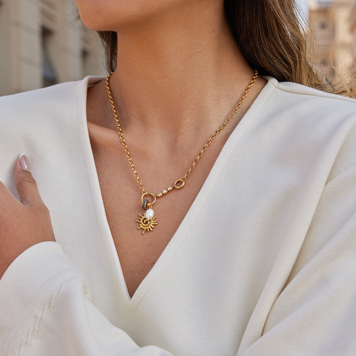 0 Review for Spiral Solar Pendant Titanium Steel Freshwater Pearl Necklace