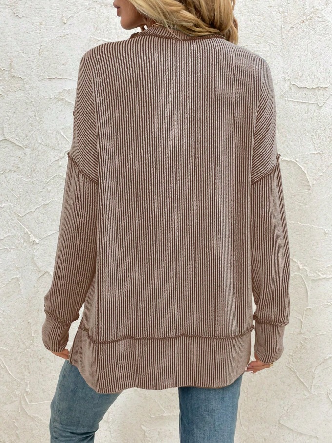 0 Review for Split-front Long-sleeve Loose-fitting Sweatshirt Hoodie