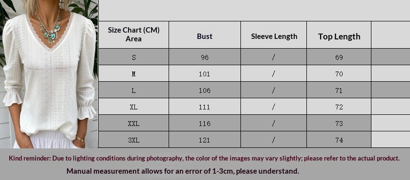 0 Review for Spring Women's V Neck Hollowed Out Mid Sleeve Top For Women