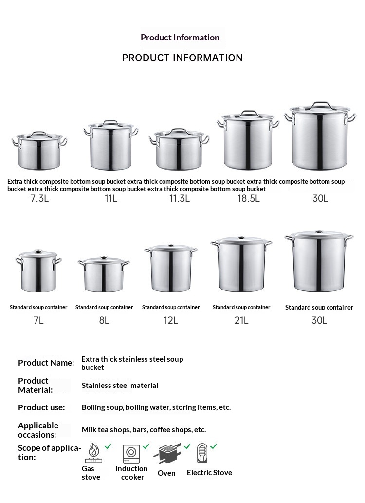Color: Ordinary soup bucket 19.5 * 20cm, ordinary soup bucket 23.5 * 17.5cm, ordinary soup bucket 24 * 24cm, ordinary soup bucket 28 * 30cm, ordinary soup bucket 33 * 35cm, extra thick composite bottom bucket 25 * 18cm, specifically for commercial induction cookers, extra thick composite bottom bucket 25 * 25.5cm, specifically for commercial induction cookers, extra thick composite bottom bucket 30 * 20cm, specifically for commercial induction cookers, extra thick composite bottom bucket 30 * 30cm
