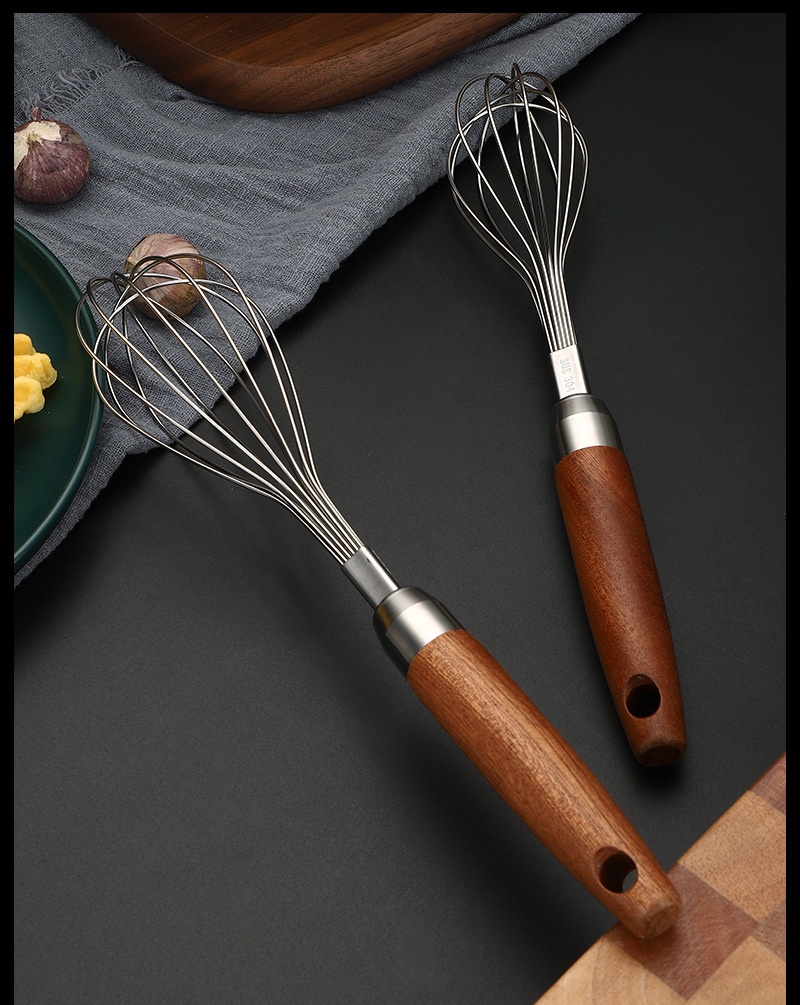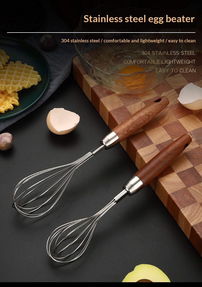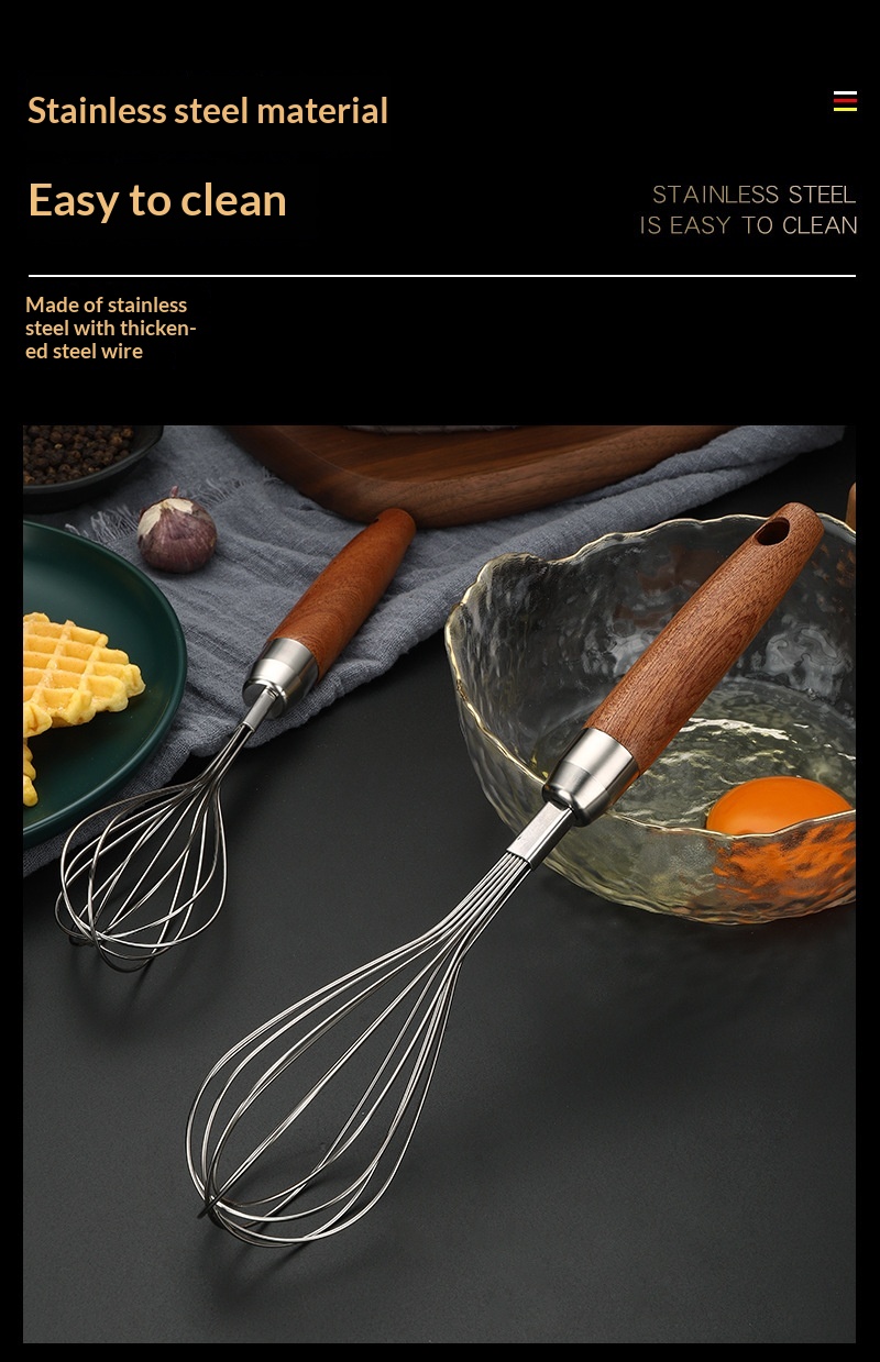 Stainless Steel Wooden-handled Manual Kitchen Mixeregg Beater Gadget