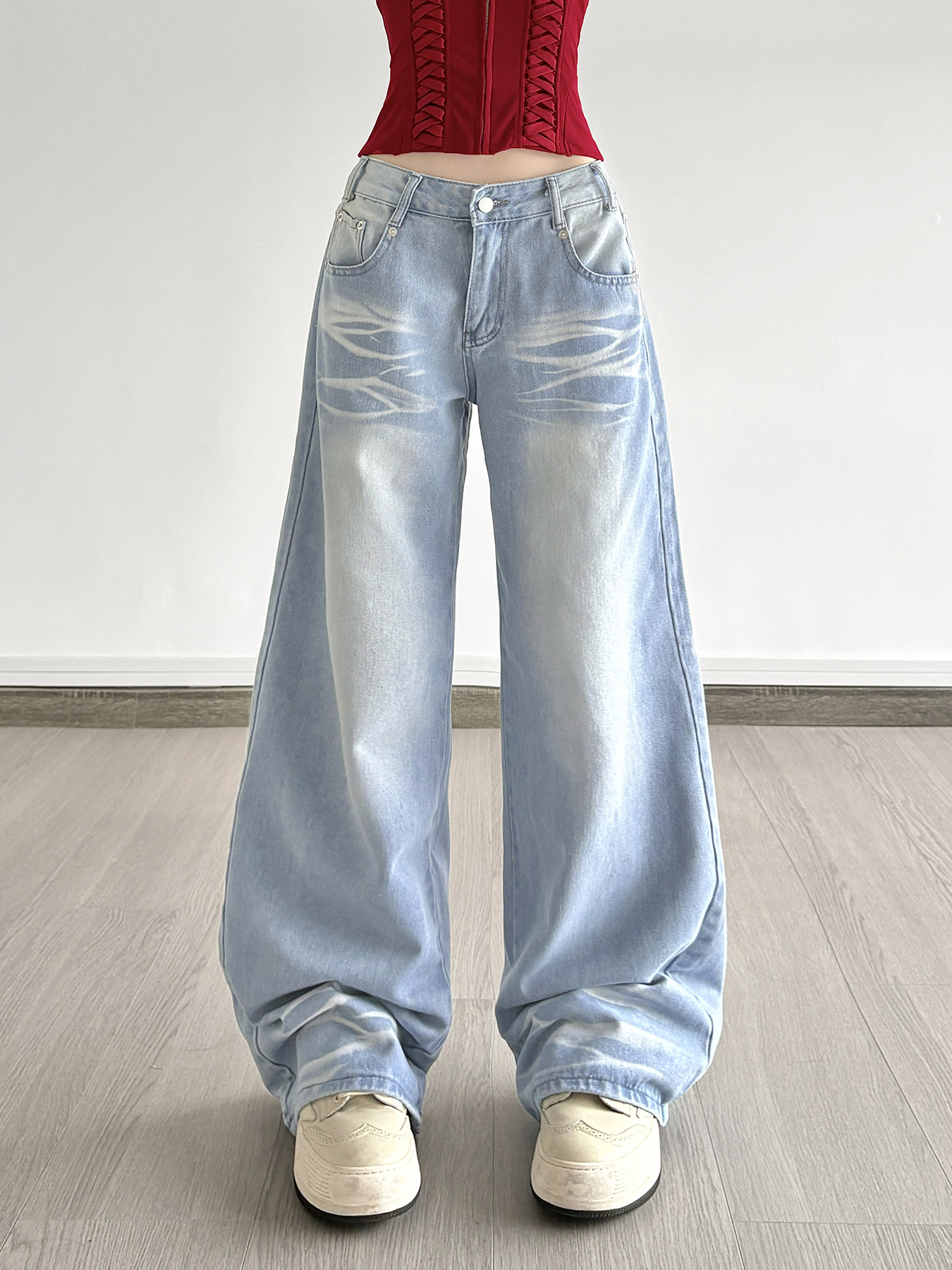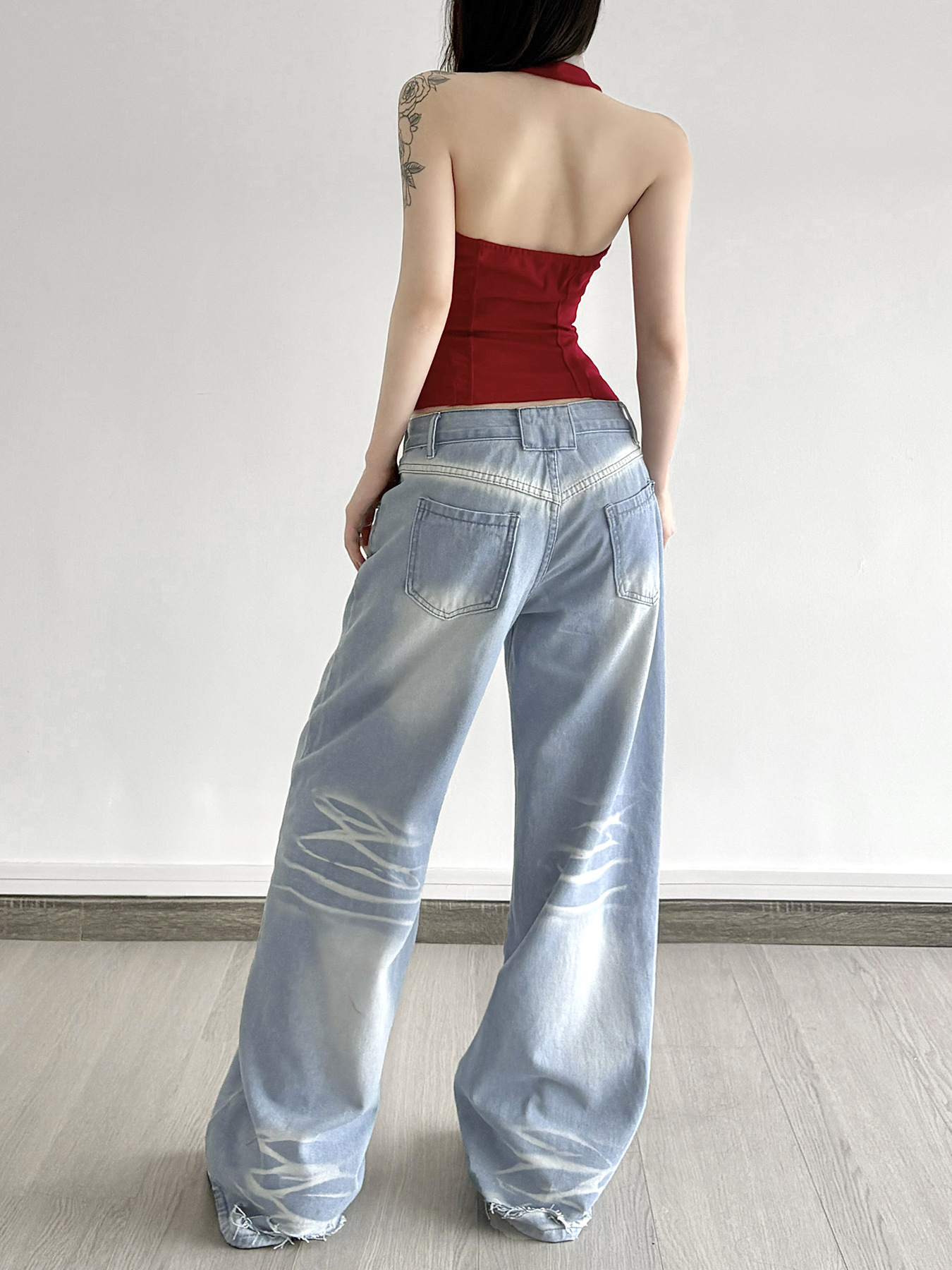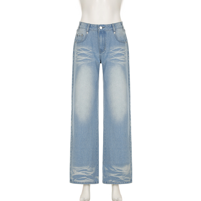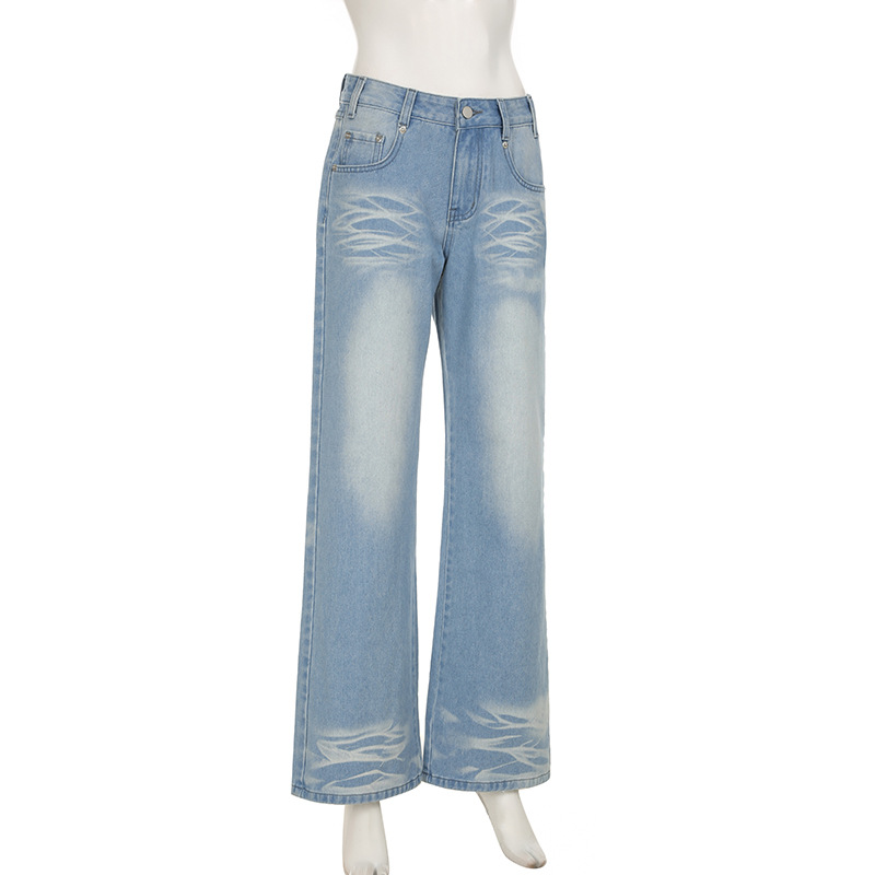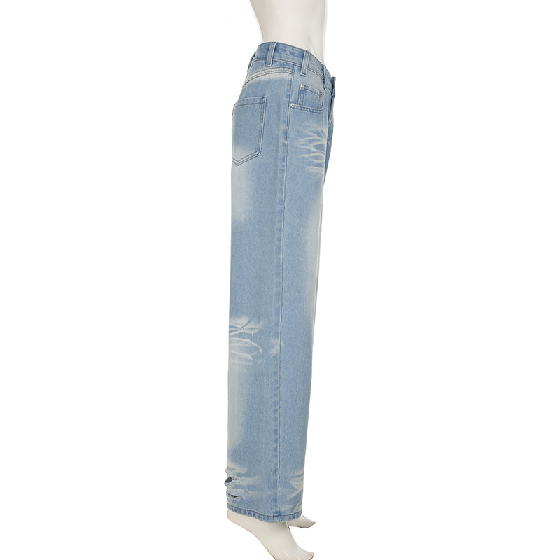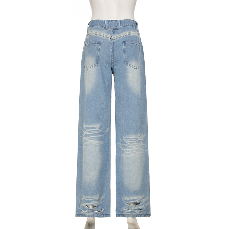 Street-style Distressed High-rise Straight-leg Jeans