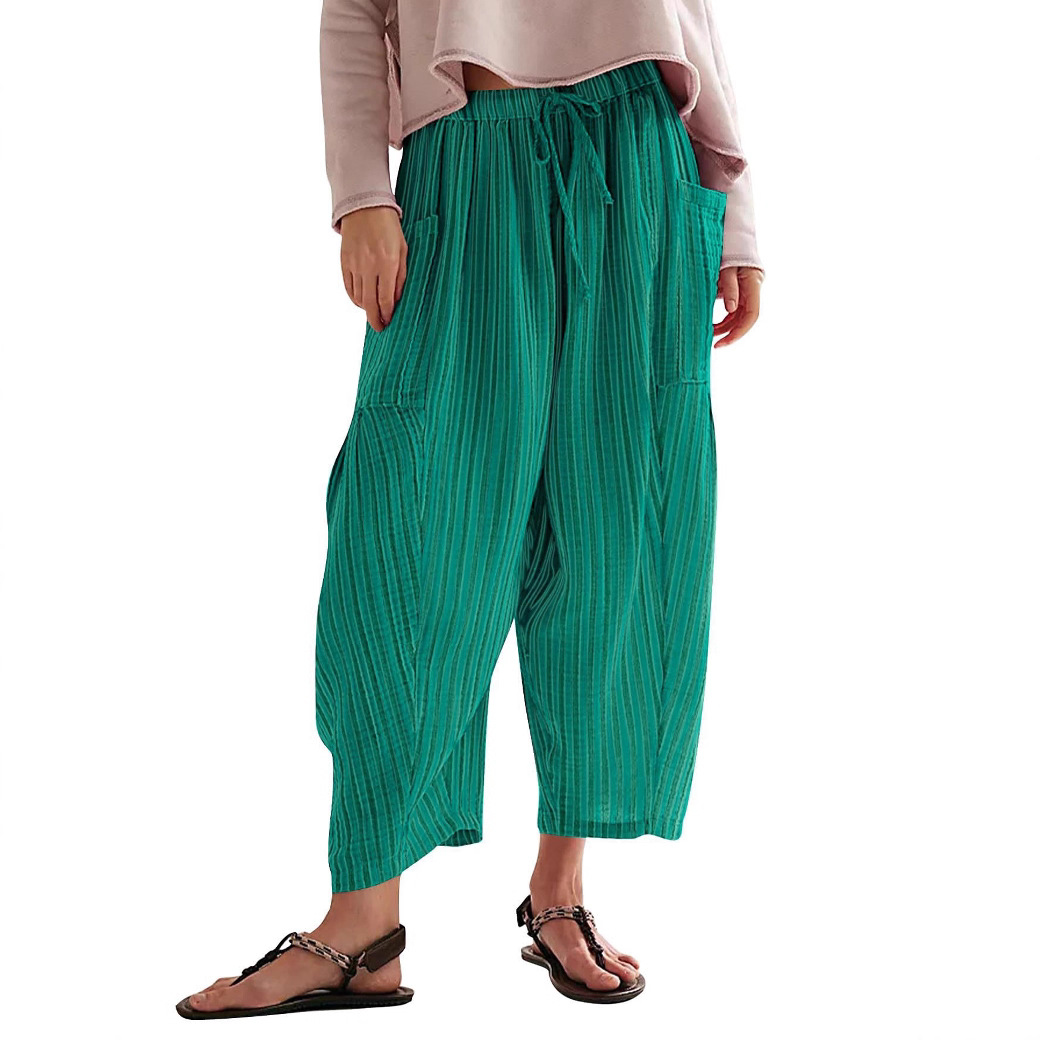 0 Review for Striped Straight-leg Pants Elastic Waist Cropped Pleated Pants