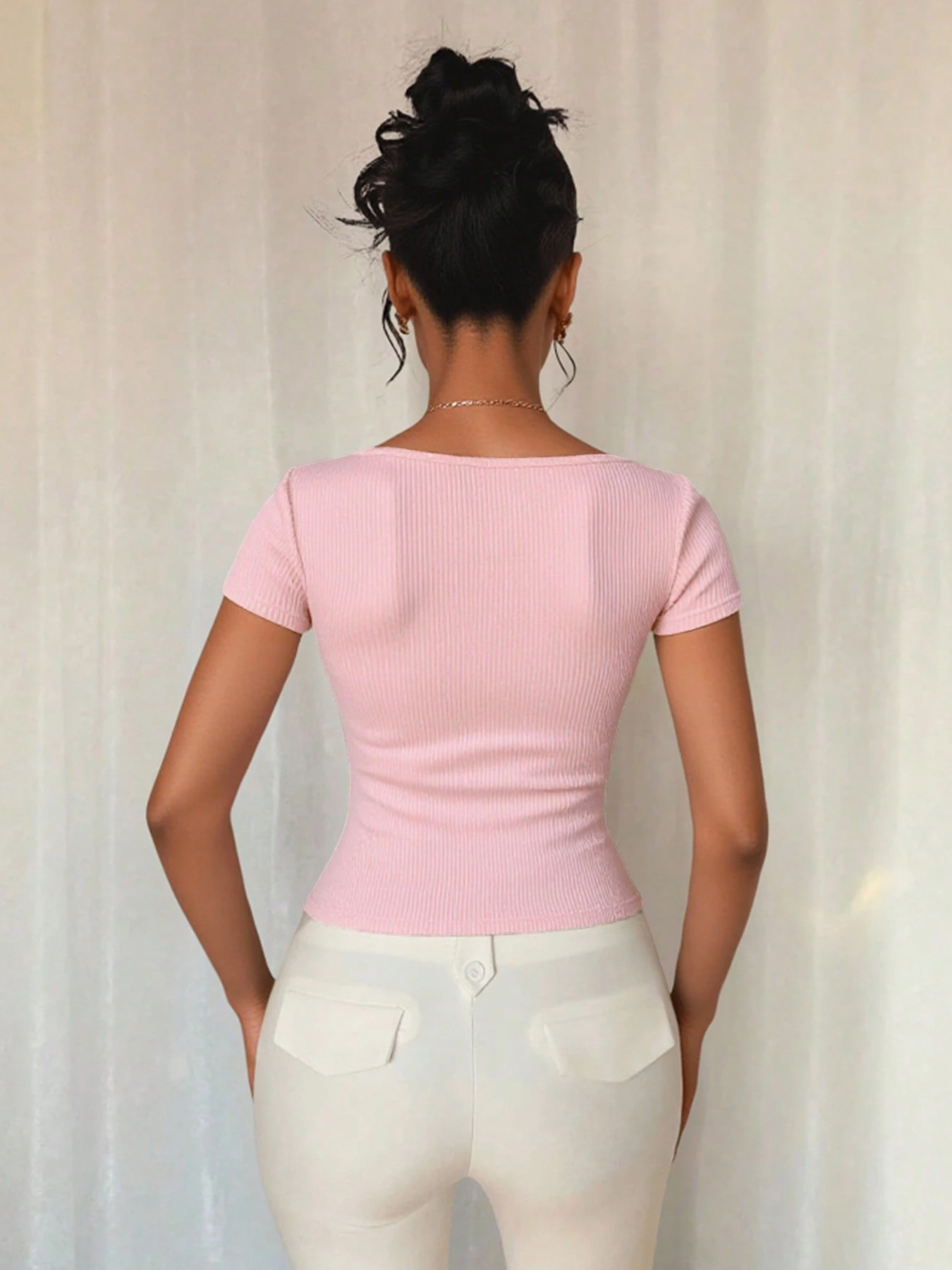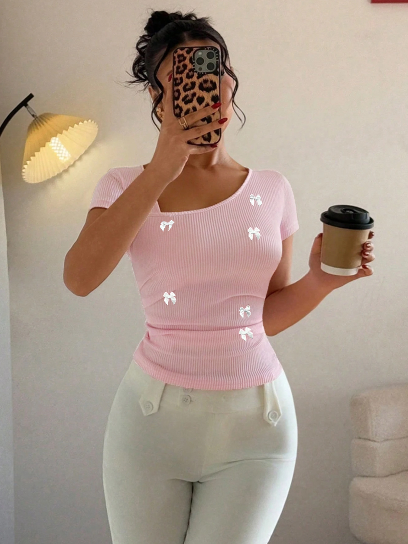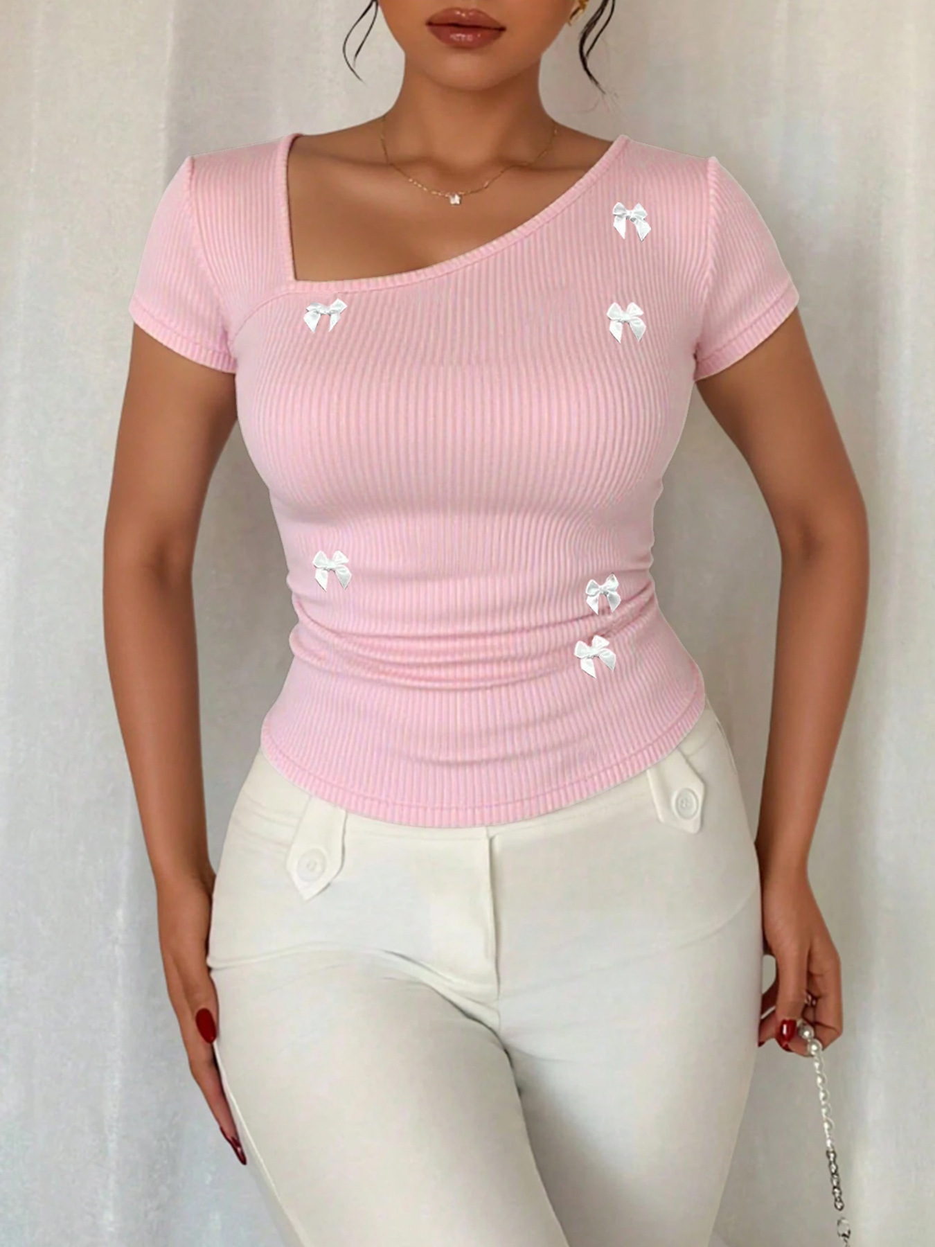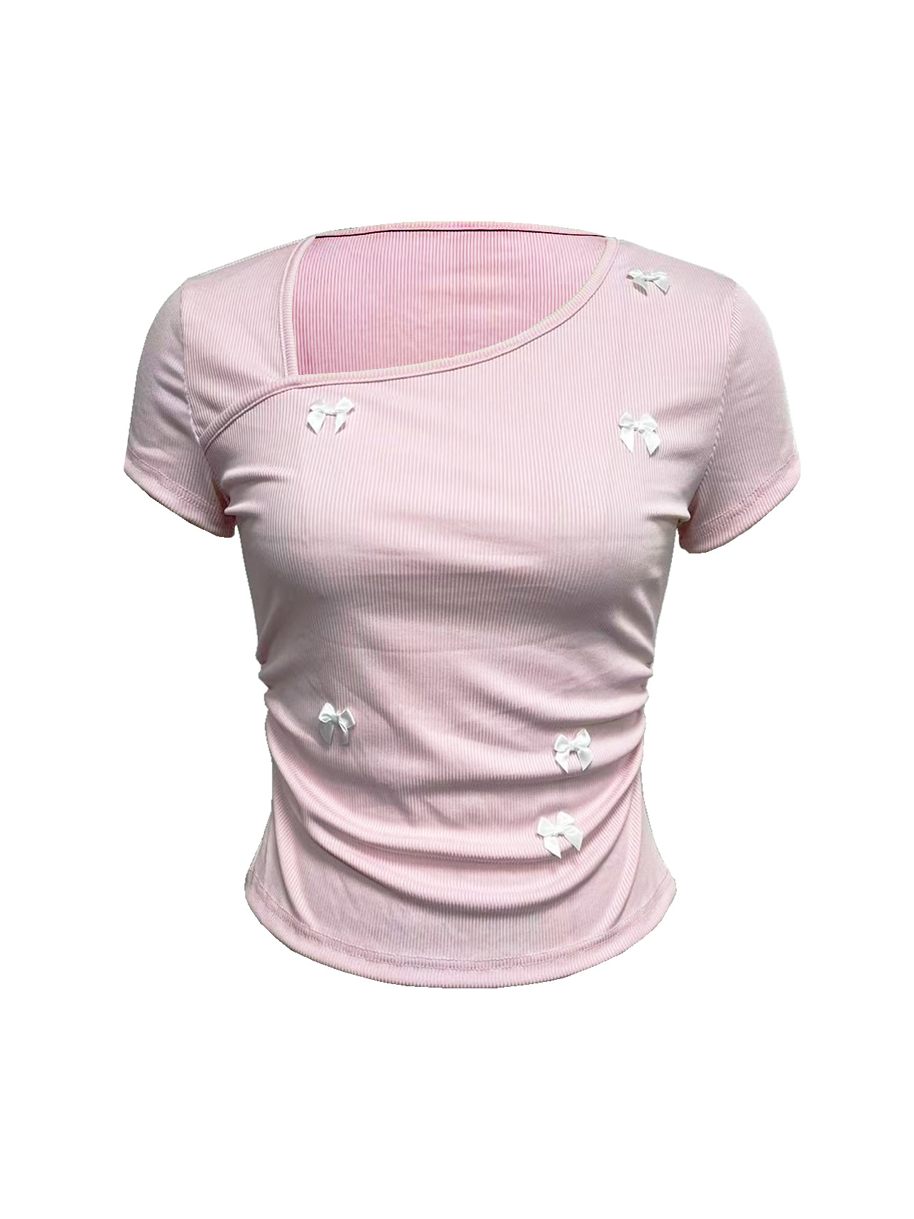 Summer T-shirt With A Bow Accent And Slanted Neckline