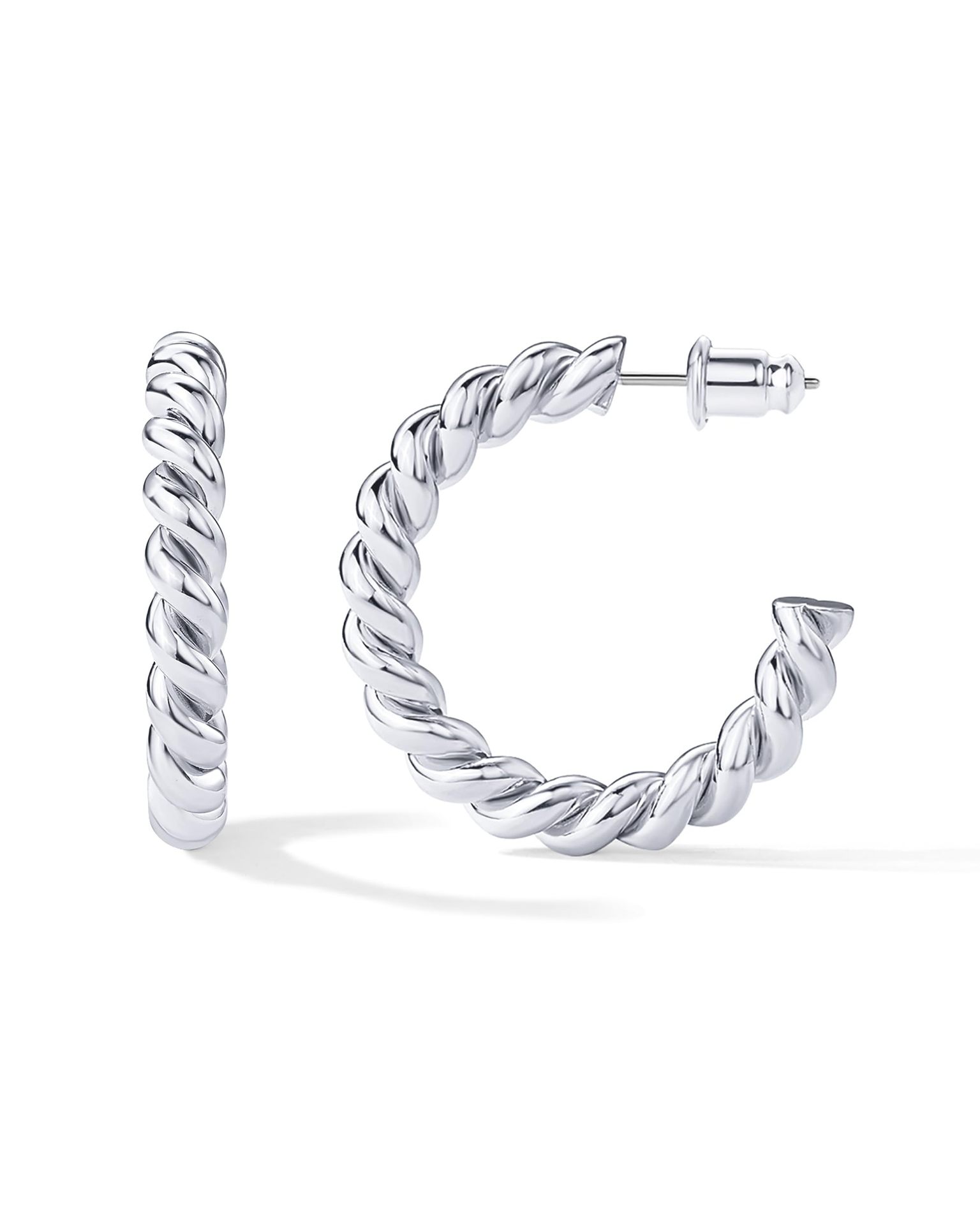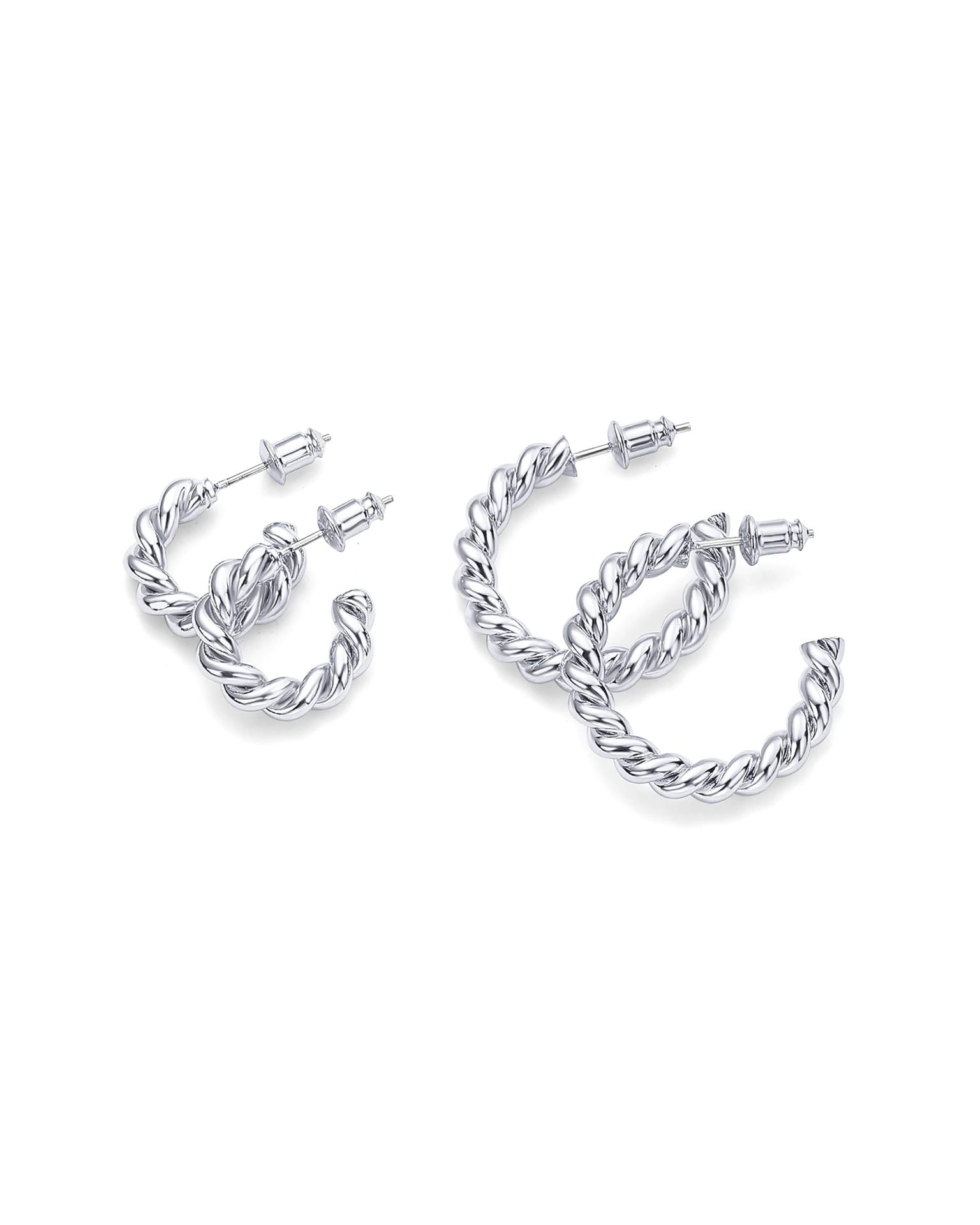 0 Review for Titanium Steel Twisted Rope C-Shaped Earrings For Women