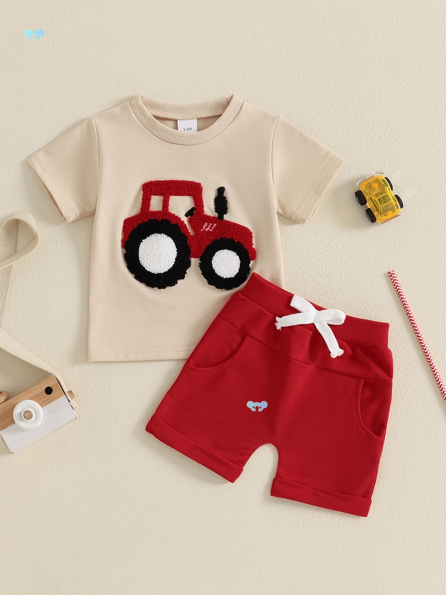 0 Review for Toddler Boys Summer Outfits Truck Embroidered Round Neck