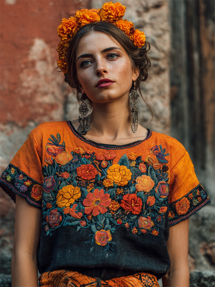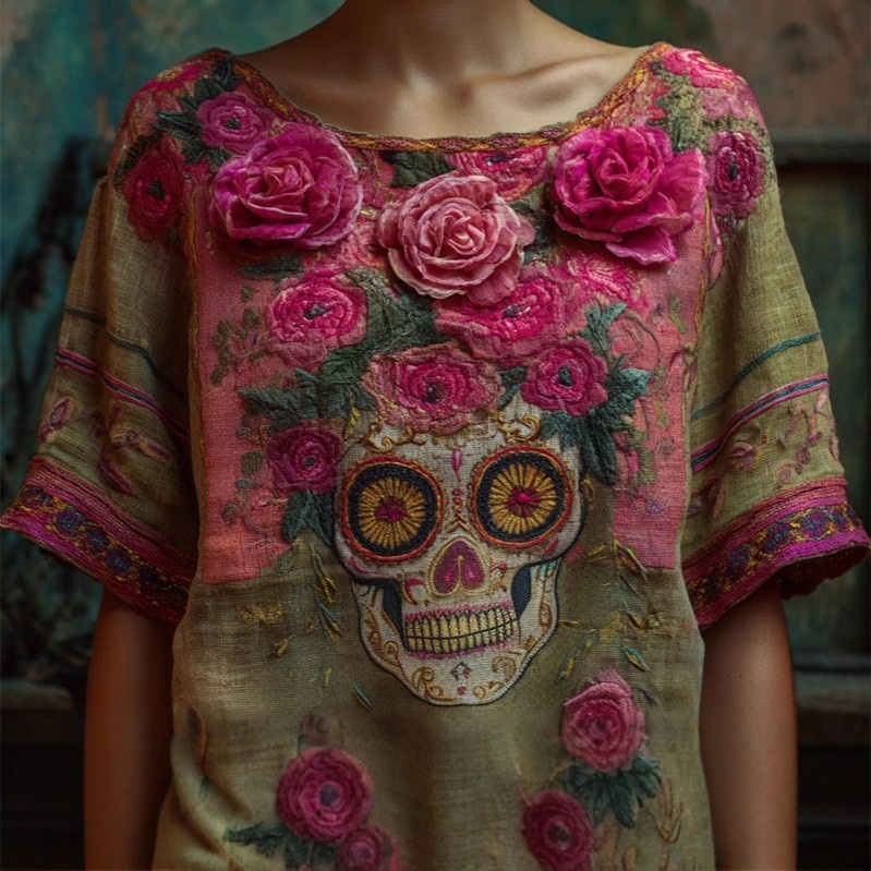 0 Review for V-neck Elegant Artistic And Retro-style Short-sleeve Top