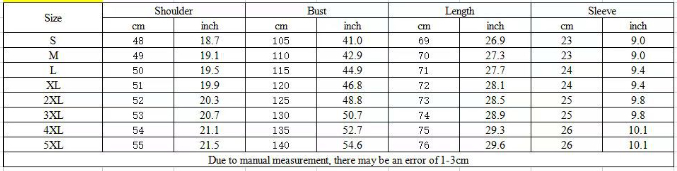 Sizes: S, M, L, XL, 2XL, 3XL, 4XL, 5XL