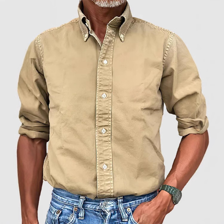 0 Review for Versatile Solid-Color Lapel-Button Business Shirt For All Seasons
