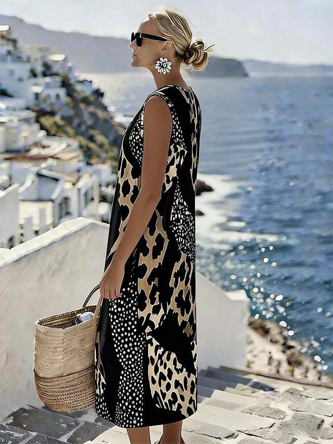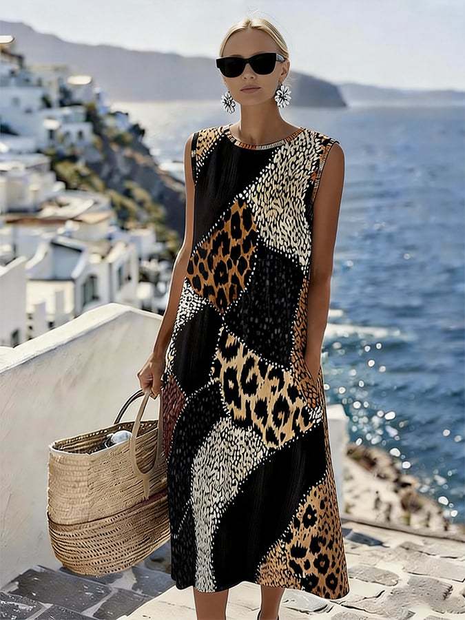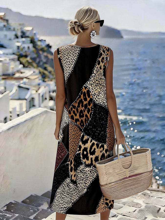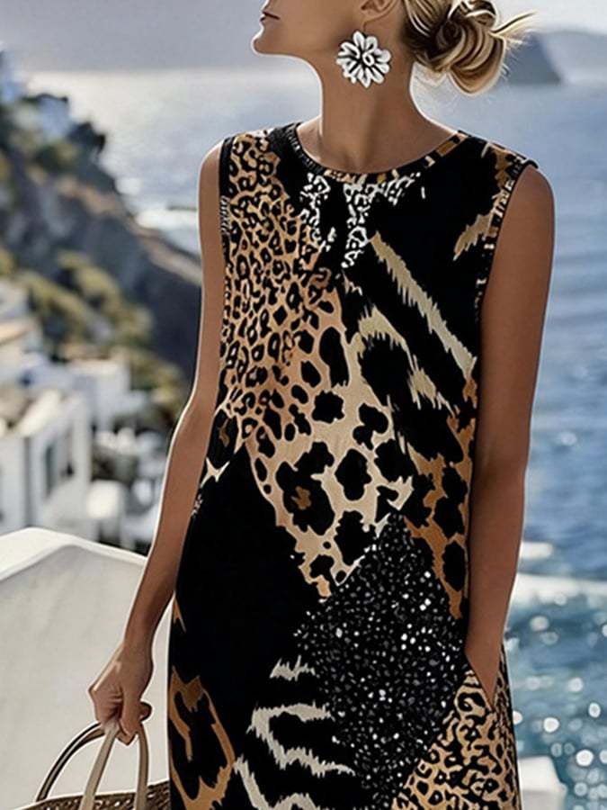 Women's Fashionable Sleeveless Leopard-Print Dress