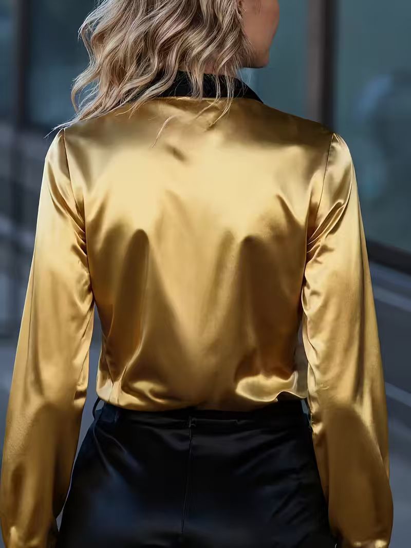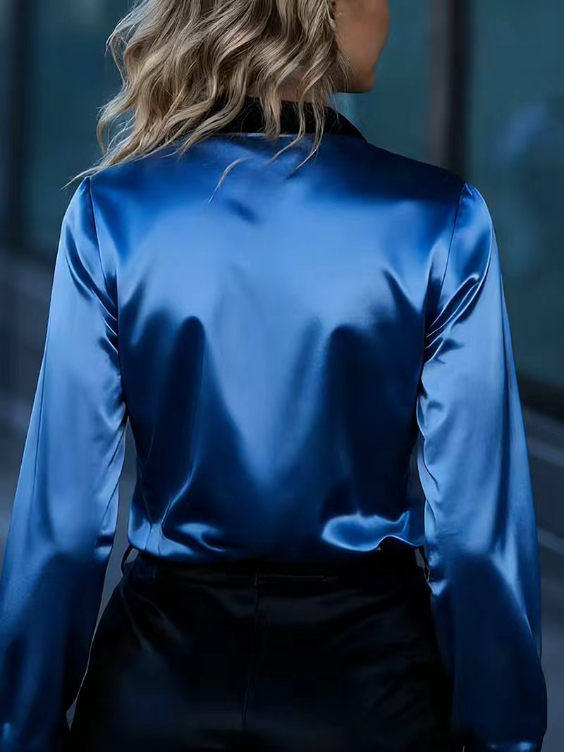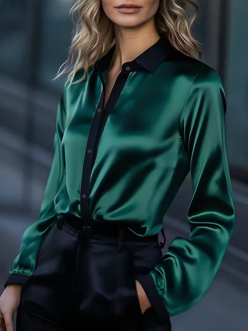 0 Review for Women's Satin Color-Block Long-Sleeve Shirt Top