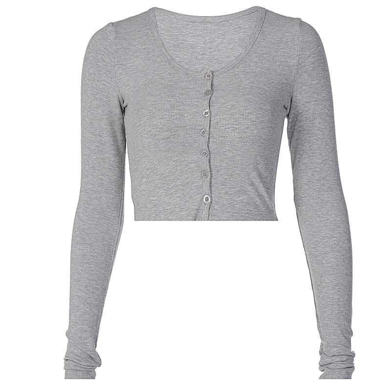 0 Review for Women's Solid-Colored Single-Breasted Slim-Fit Long-Sleeve Top