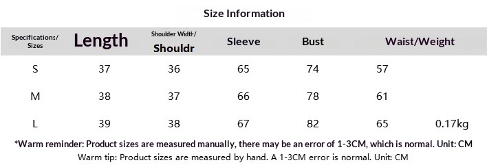 Sizes: S, M, L