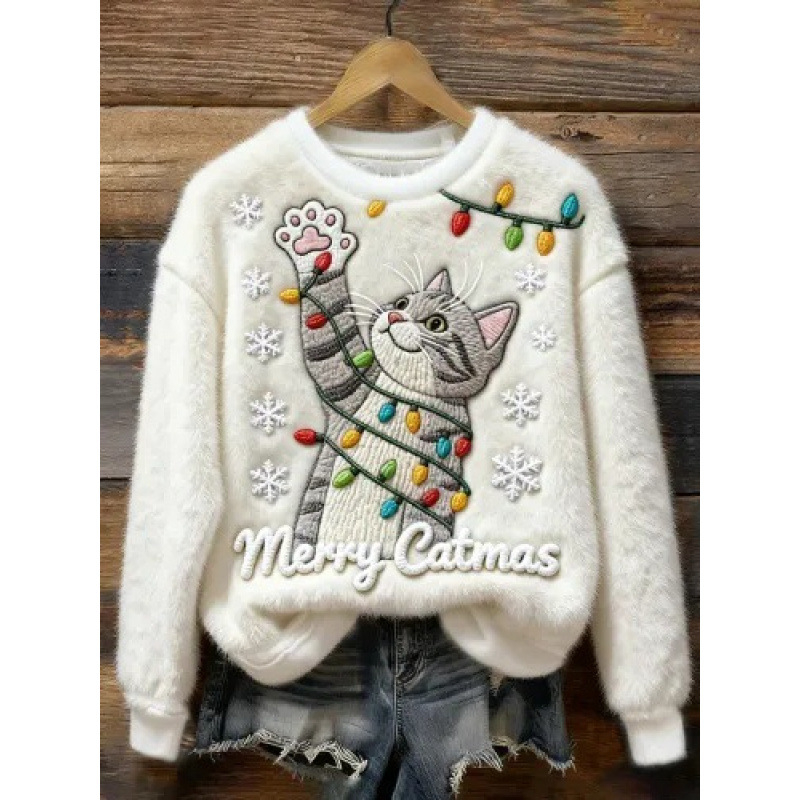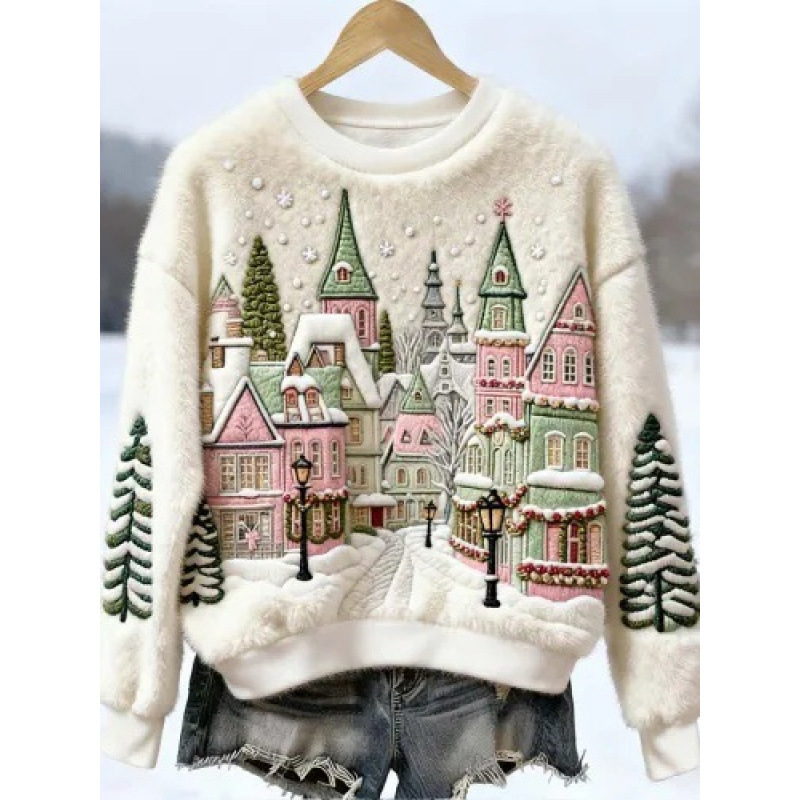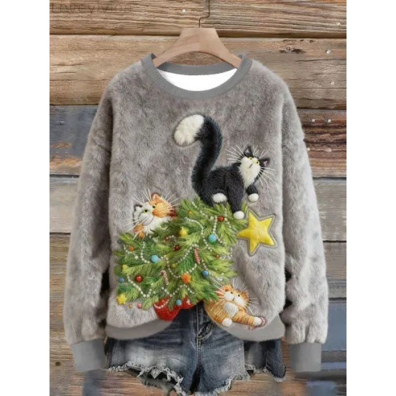 0 Review for Womens Autumn Winter Christmas Cartoon Puppy Crew-Neck Sweatshirt