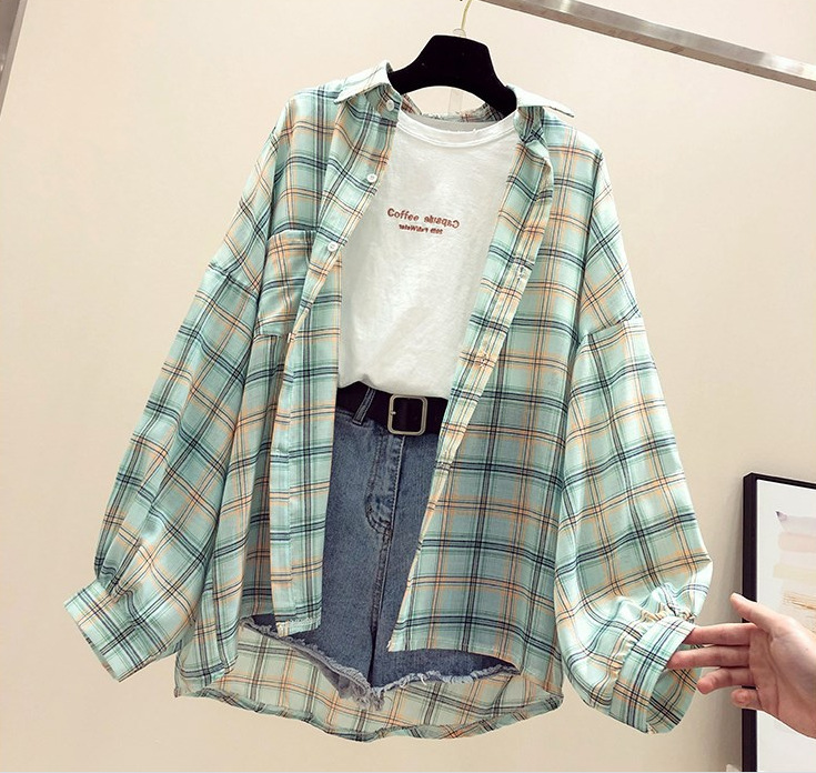 0 Review for Womens Creative Casual Loose Plaid Shirt