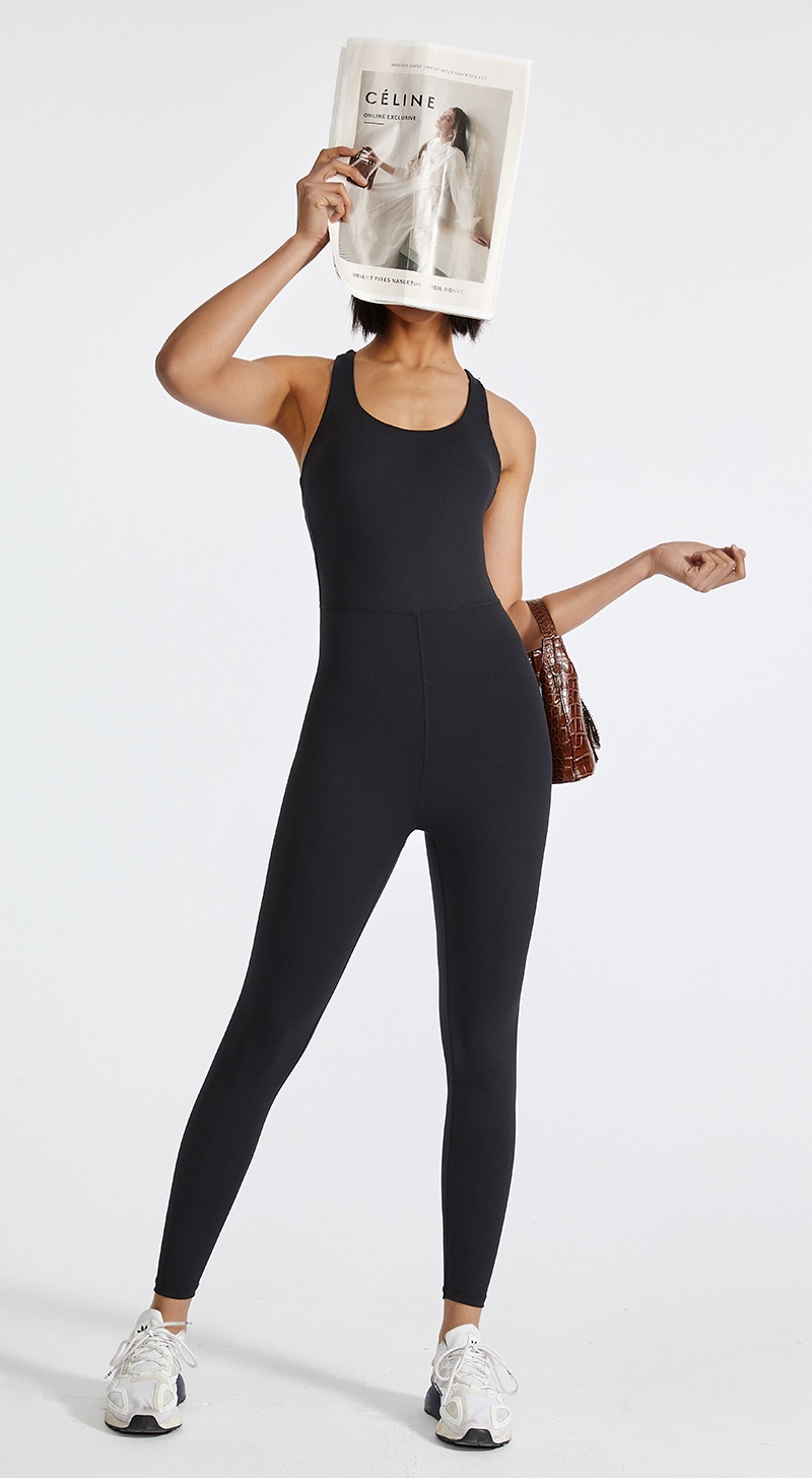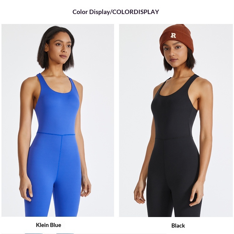 0 Review for Womens Crew-neck Camisole Bodysuit With Tight-fitting Pants High-stretch Figure-hugging Yoga Wear