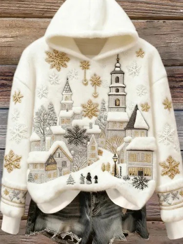 0 Review for Womens Flannel Christmas Crew-Neck Long-Sleeve Top