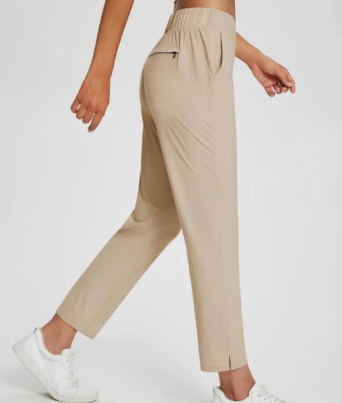 Womens High-Waist Casual Pants With Elastic Waistband Zippered Pockets