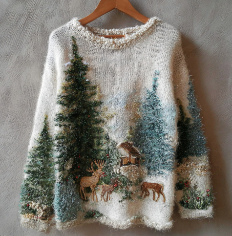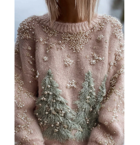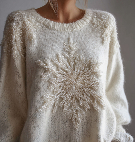 0 Review for Womens Loose-fitting Pullover Sweater With A Round Neck And Floral Print