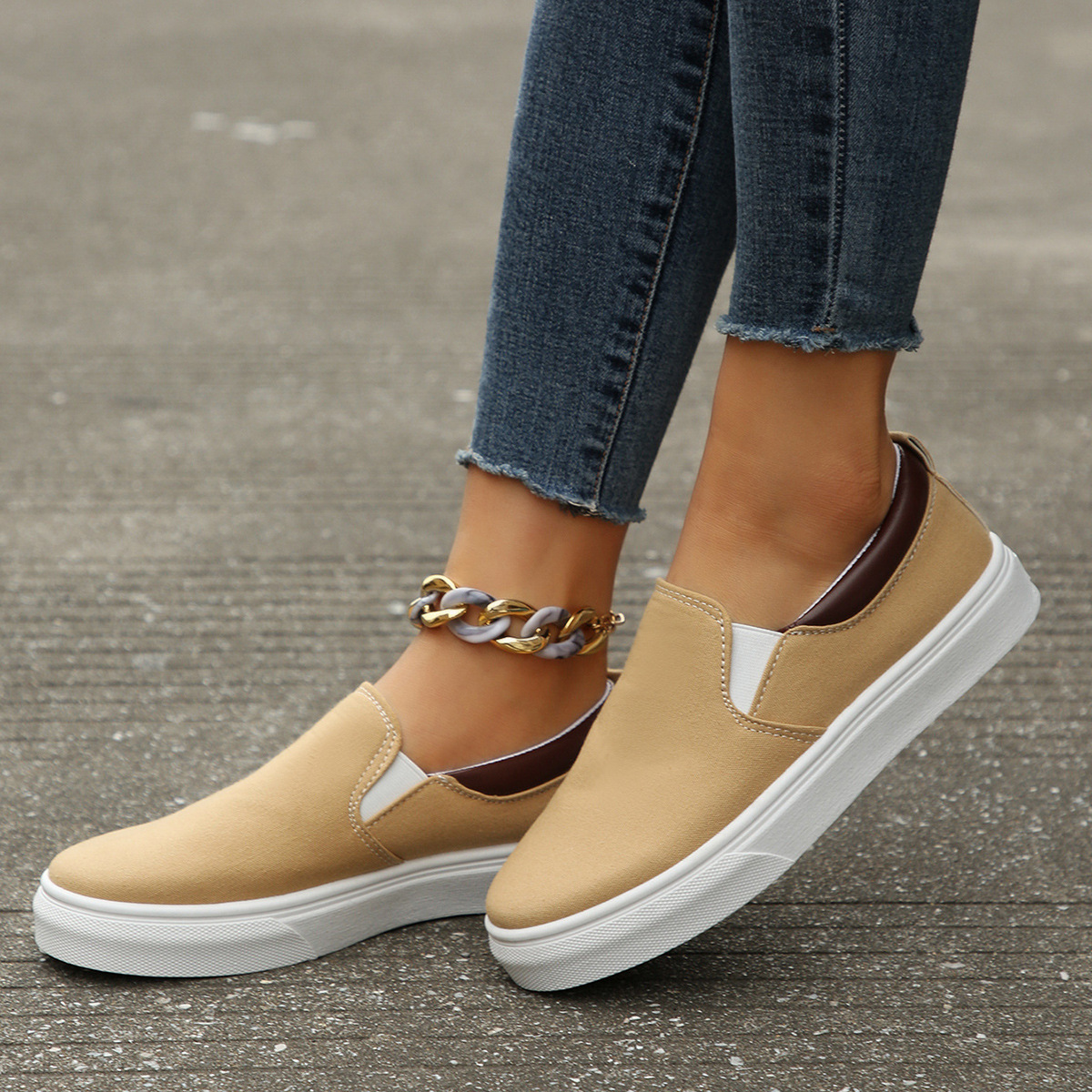0 Review for Womens Low-Top Solid-Colored Flat Shoes Cross-Border Slip-On Color-Block Loafers