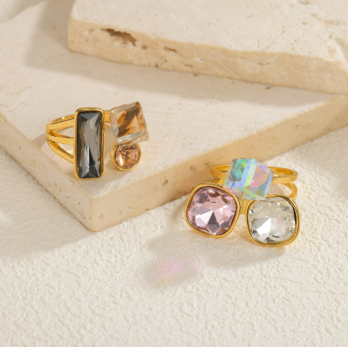 0 Review for Womens Minimalist Geometric Square Zircon Ring