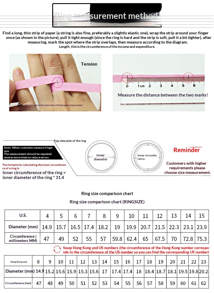 Colors: White diamond (steel color), pink diamond (steel color), purple diamond (steel color), red diamond (steel color), green diamond (steel color), white diamond (gold color), pink diamond (gold color), purple diamond (gold color), red diamond (gold color), green diamond (gold color)