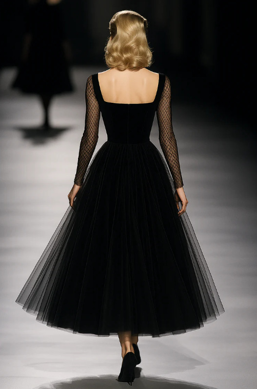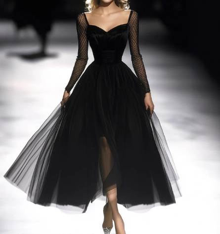 0 Review for Womens Retro Classic French Black Gauze Dress
