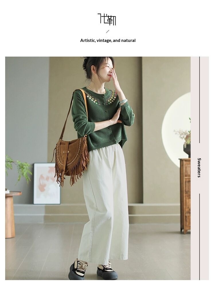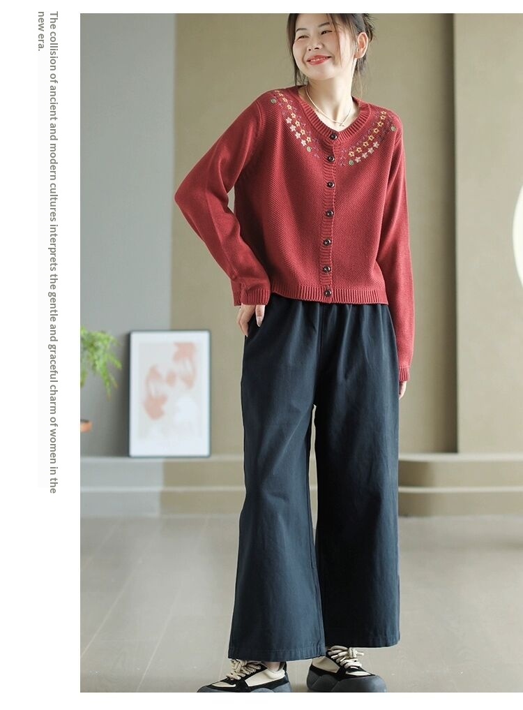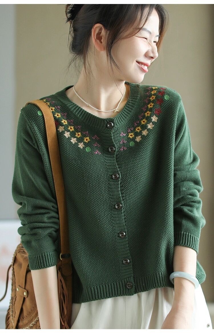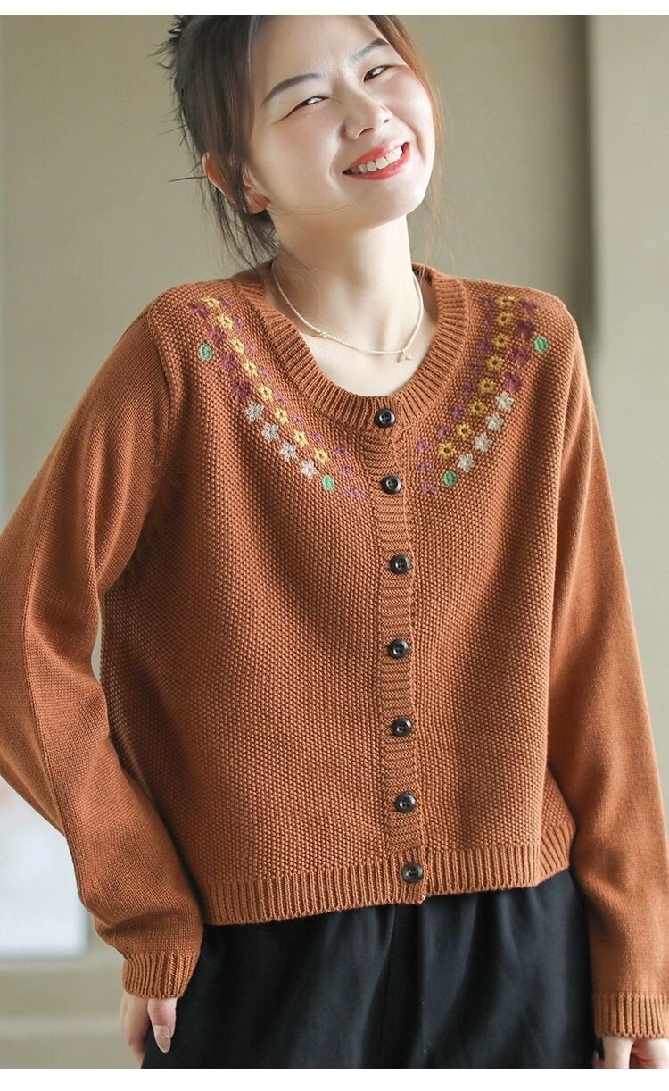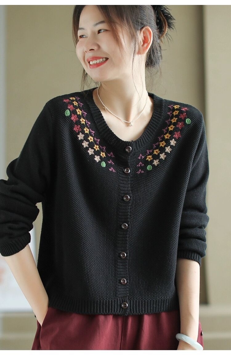 0 Review for Womens Retro Embroidered Knitted Cardigan