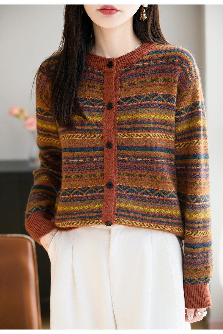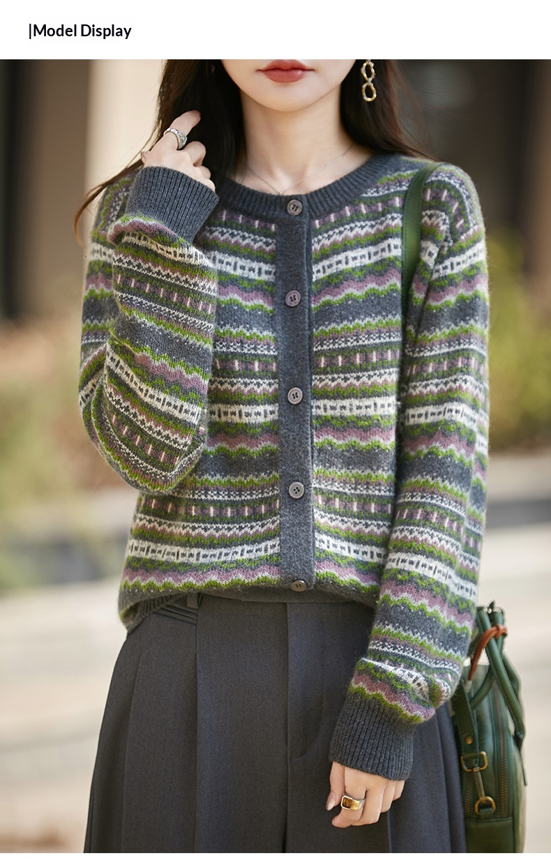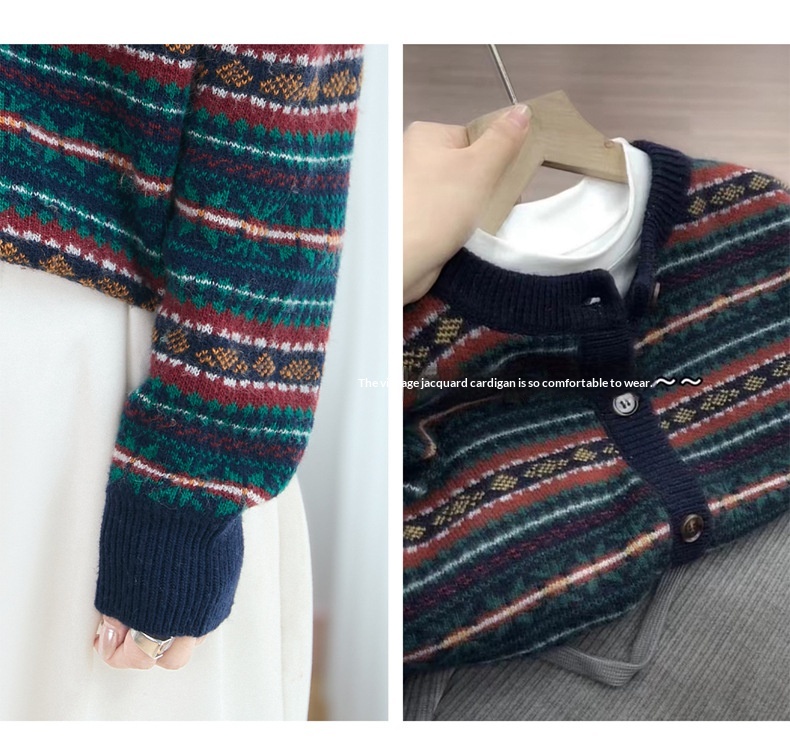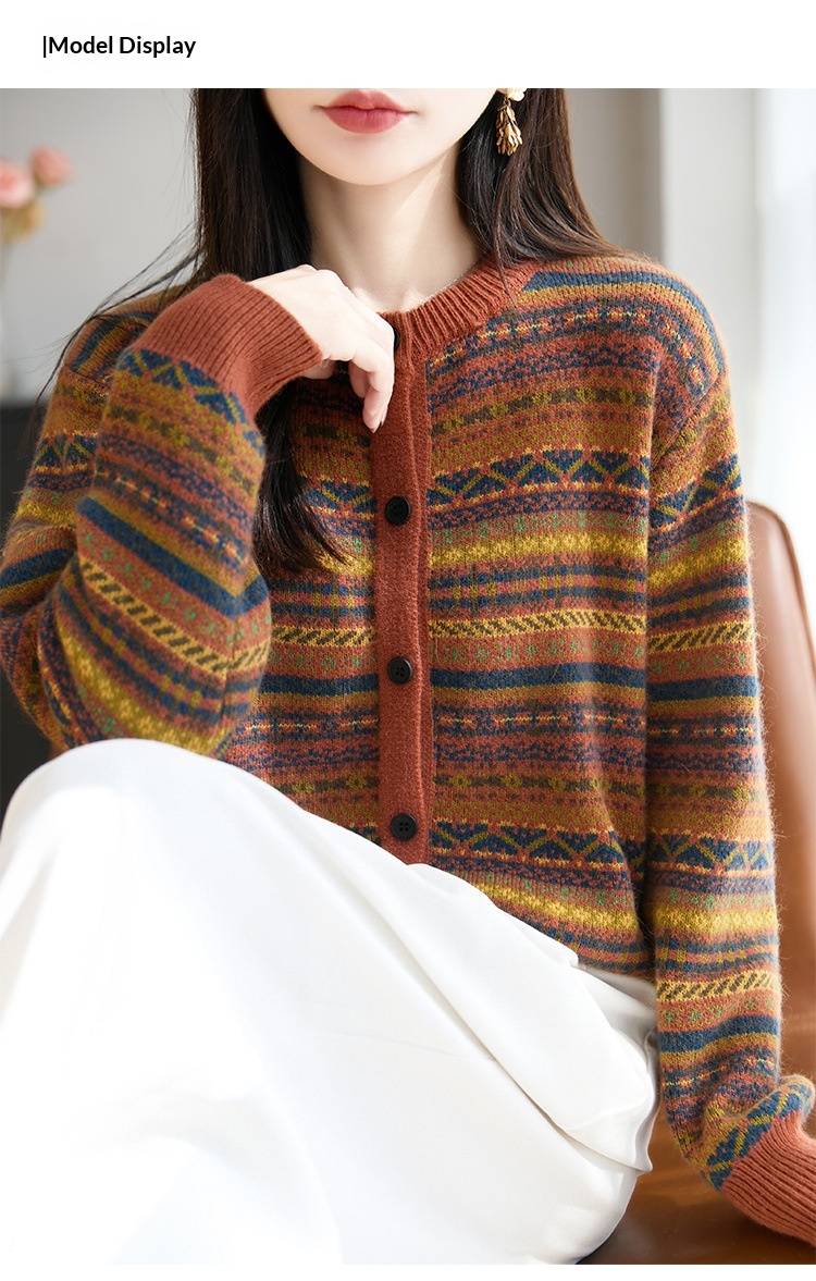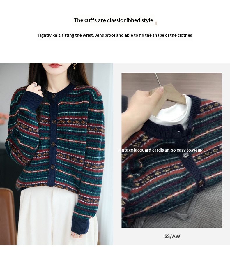 0 Review for Womens Retro Jacquard Crew-Neck Long-Sleeve Sweater